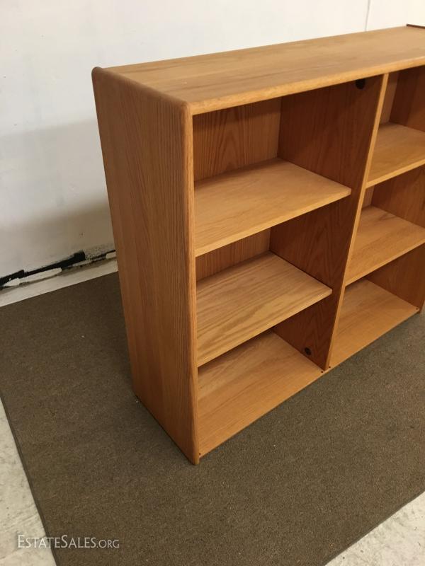 1980's oak bookcase, modern design.48"x14", 42" tall, adjustable shelves, 2 of 2 listed.