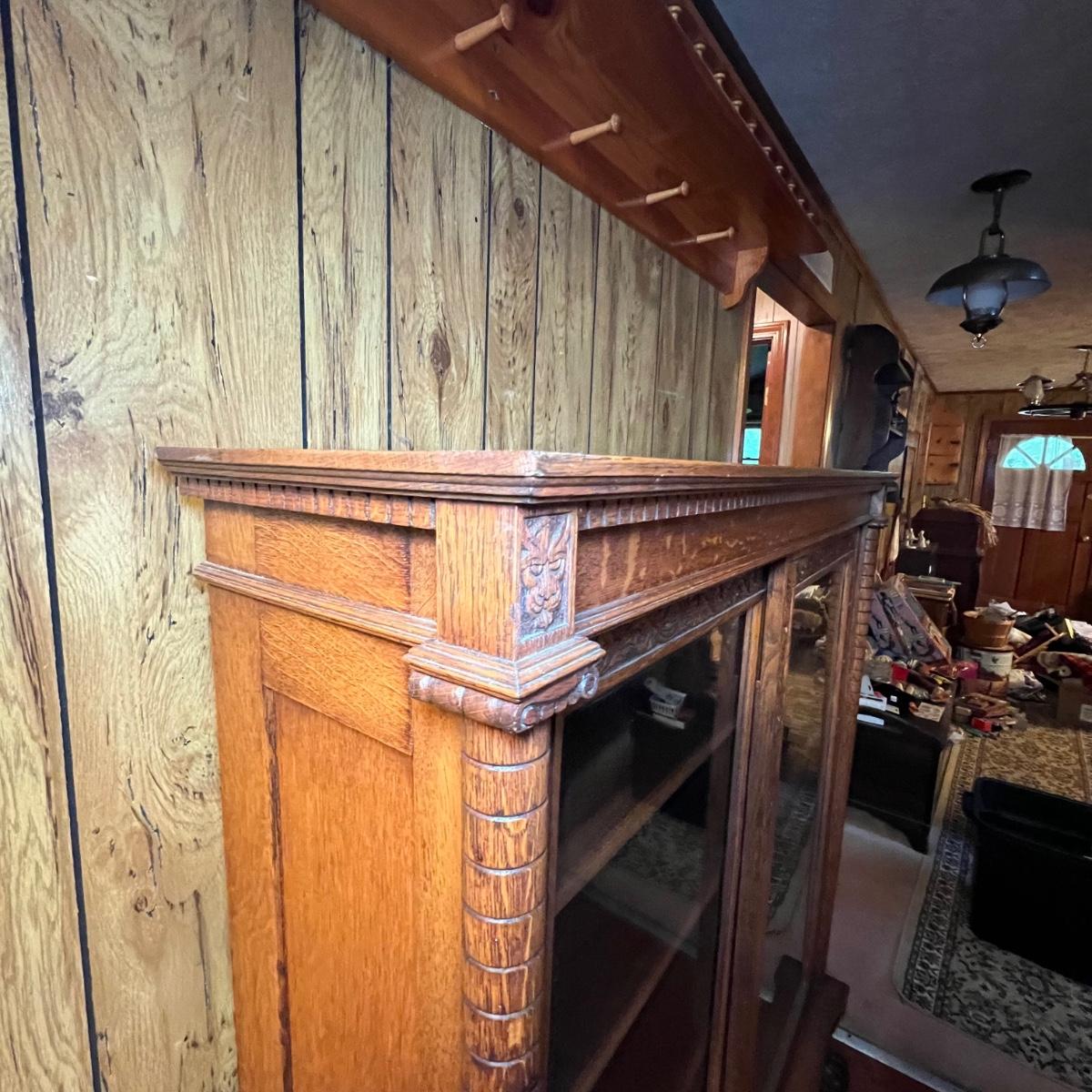 Oak Bookcase W/ Sliding Glass Doors & Oak Feet (K-RG)