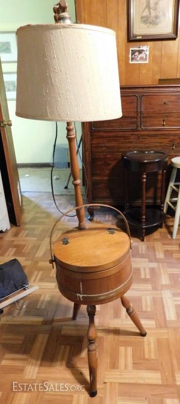 Oak Bucket Lamp and Sewing Kit