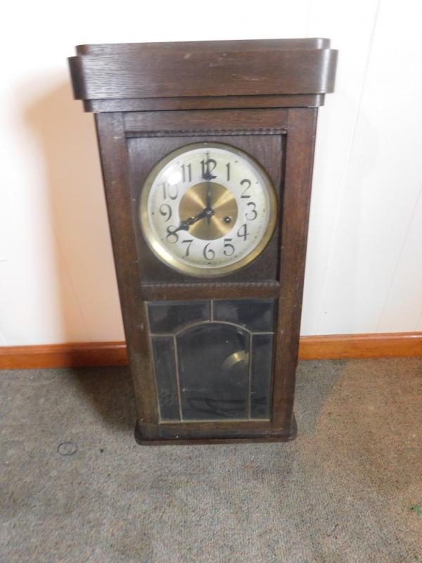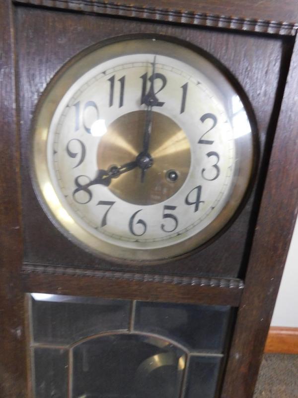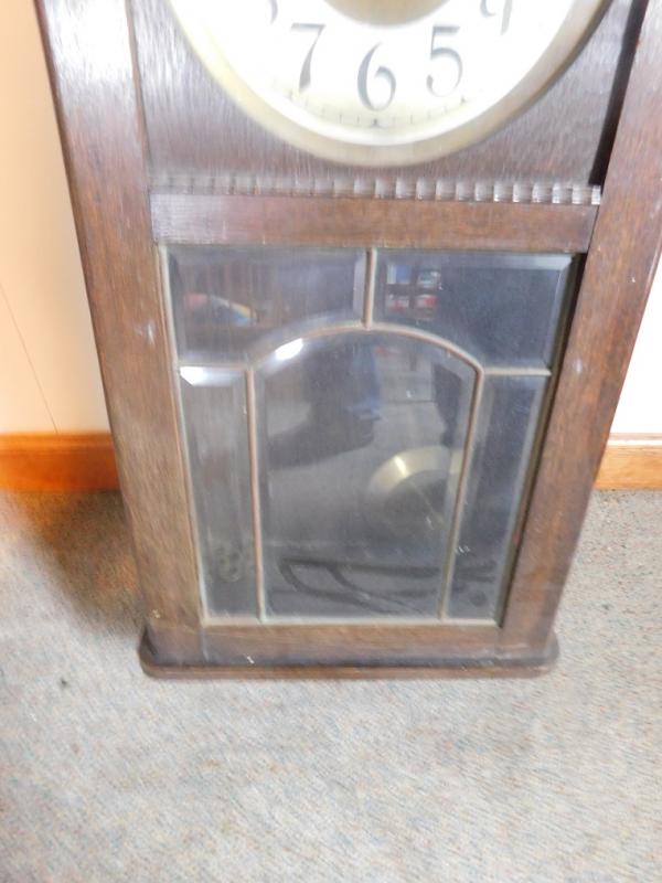 Oak Case Porcelain Face Pendulum Mantle Clock working condition unknown