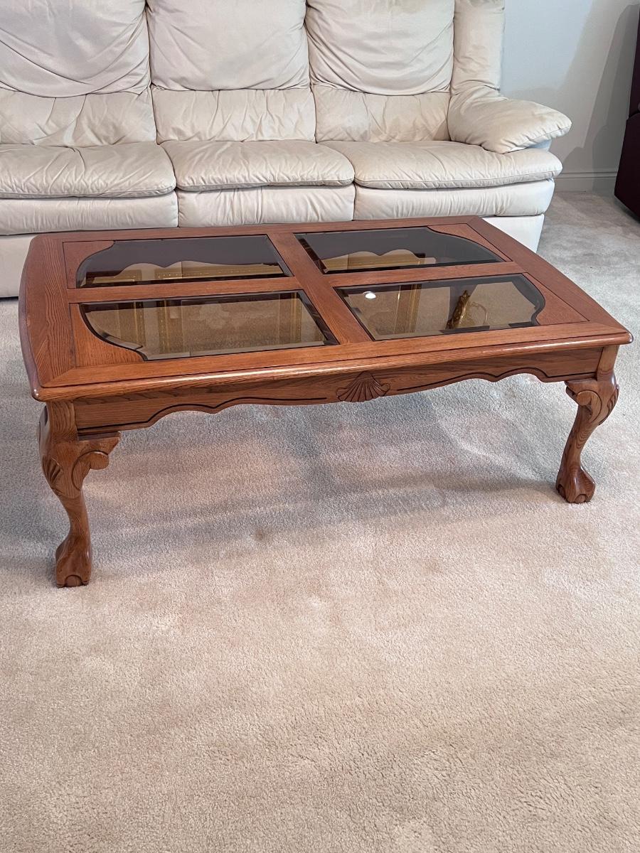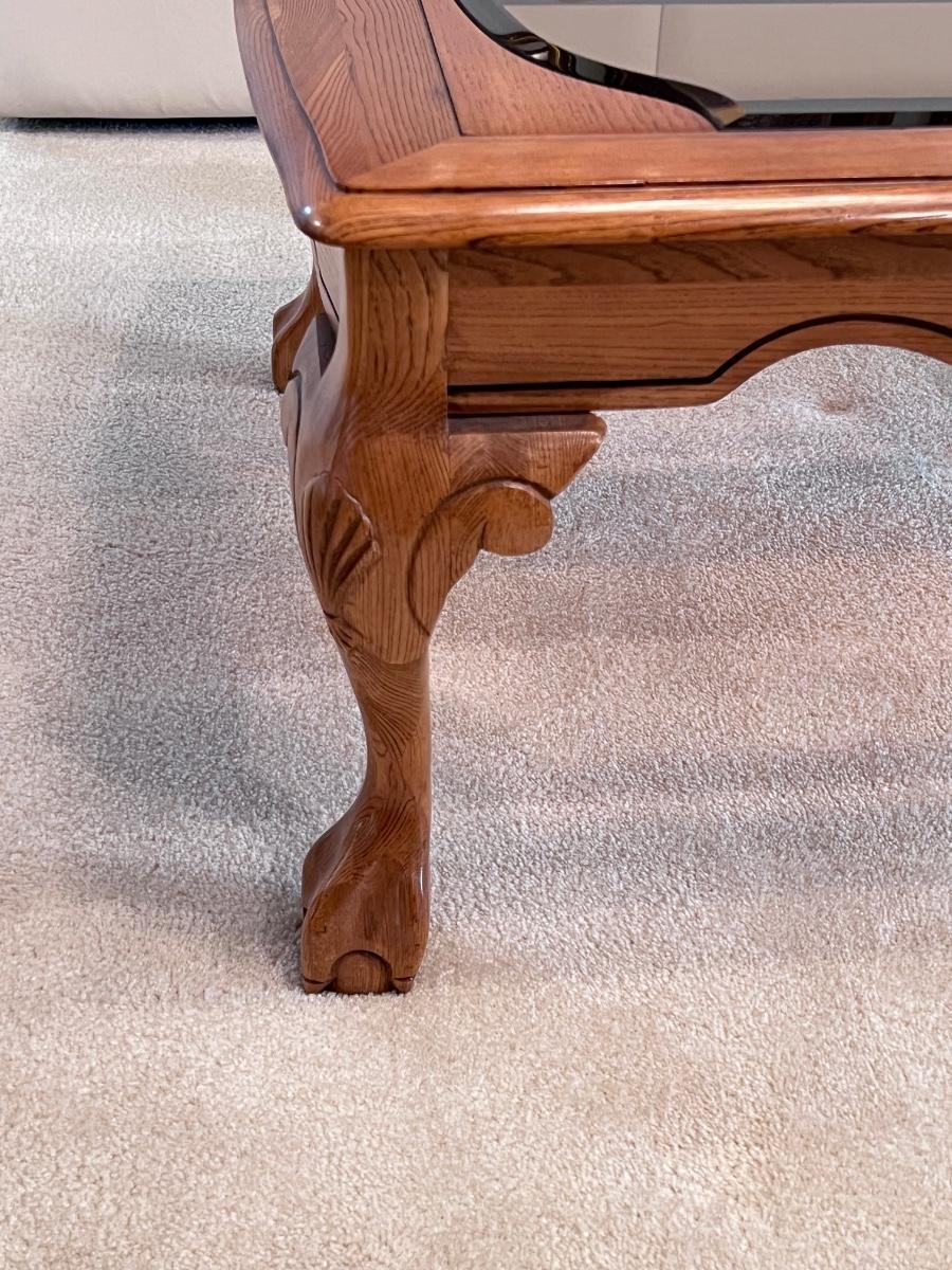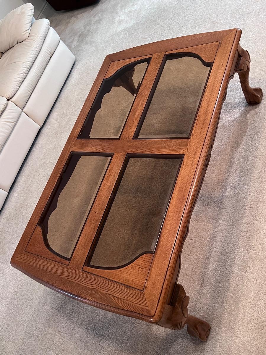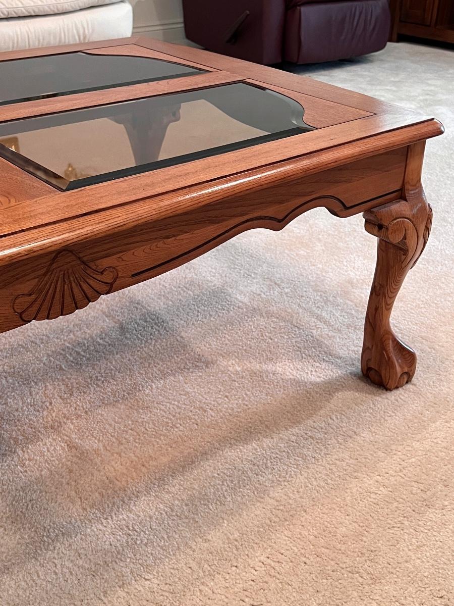 Oak Clawfoot Coffee Table With Smoked Glass Panels
