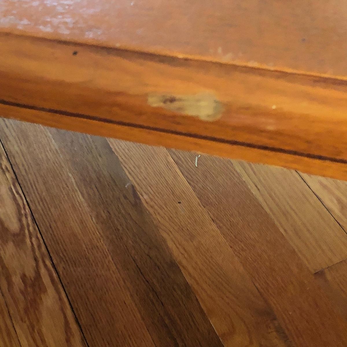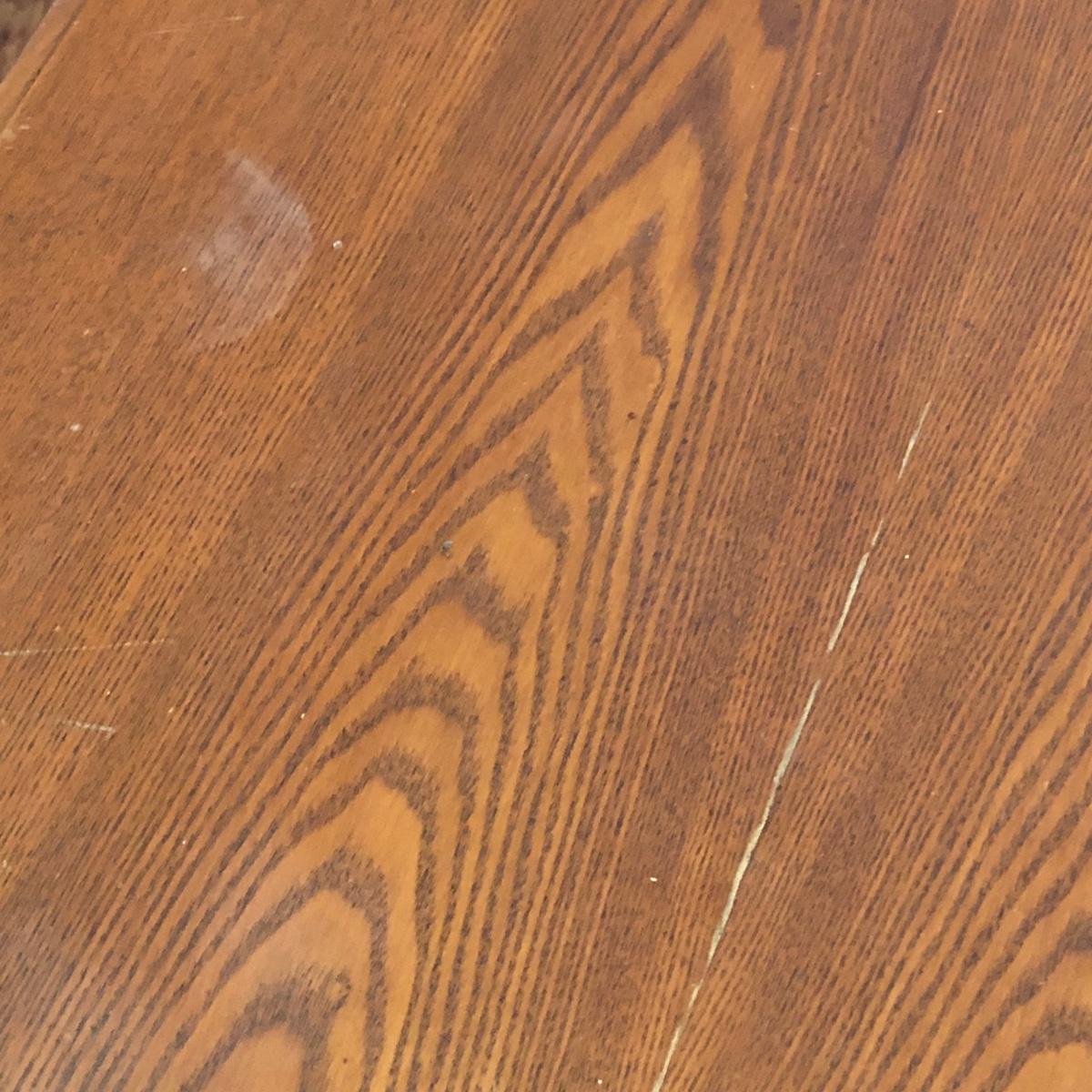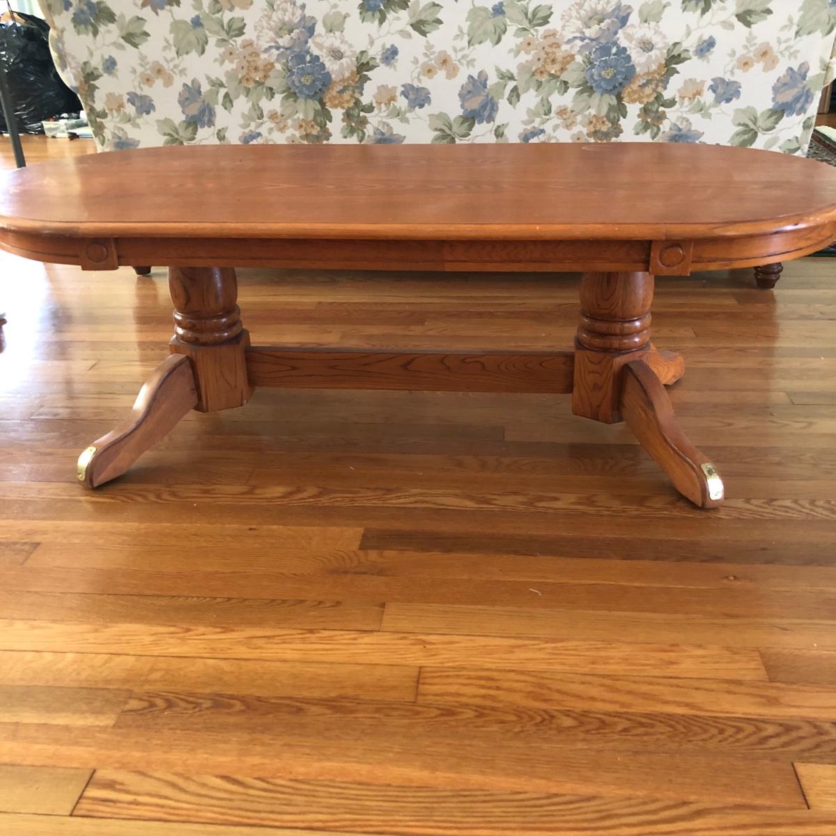 This coffee table measures 24” x 53.5” x 17.5”. Pls note scratches and coffee ring; it appears some sanding and stain would make this table like new. The table appears to be wood. Local pick up only.
