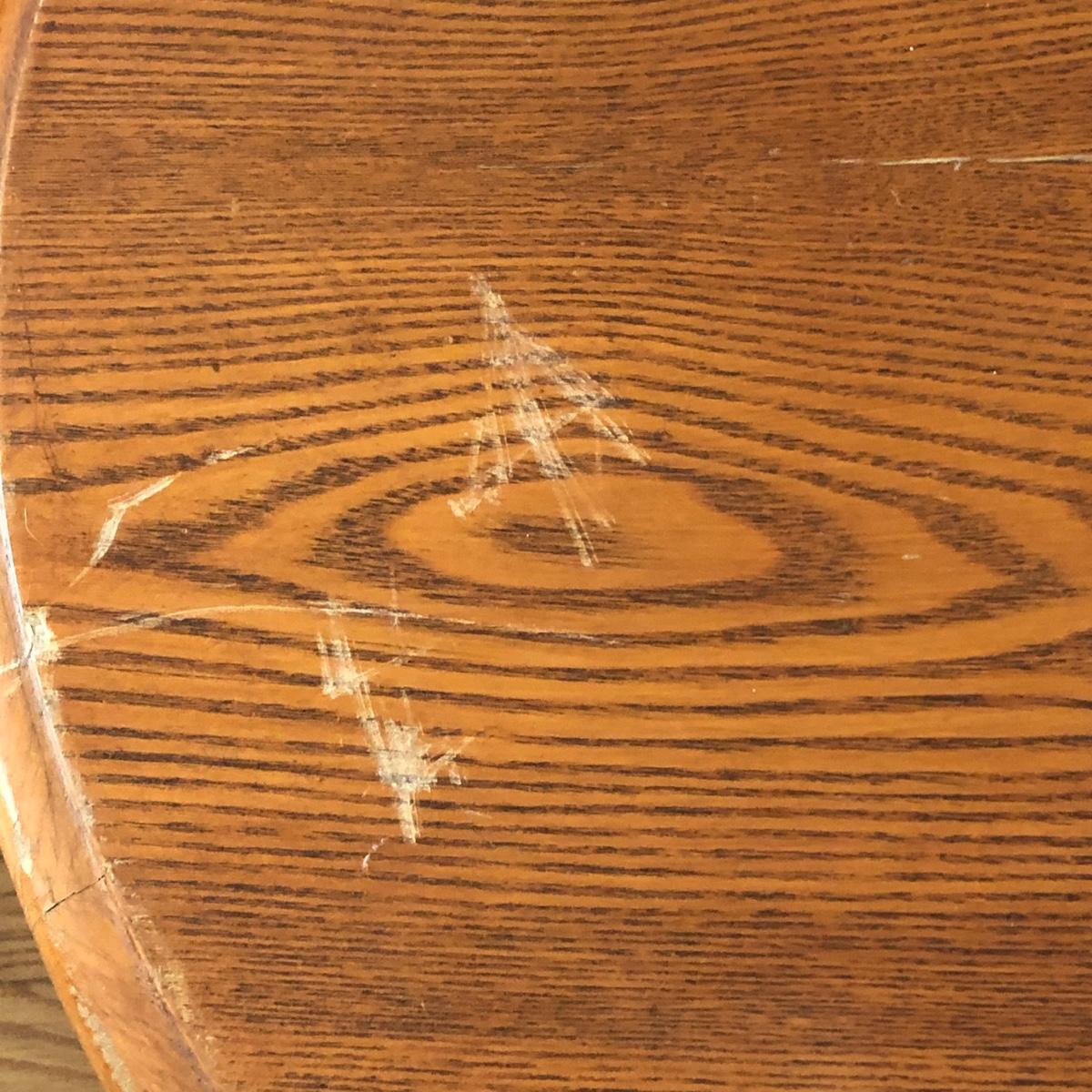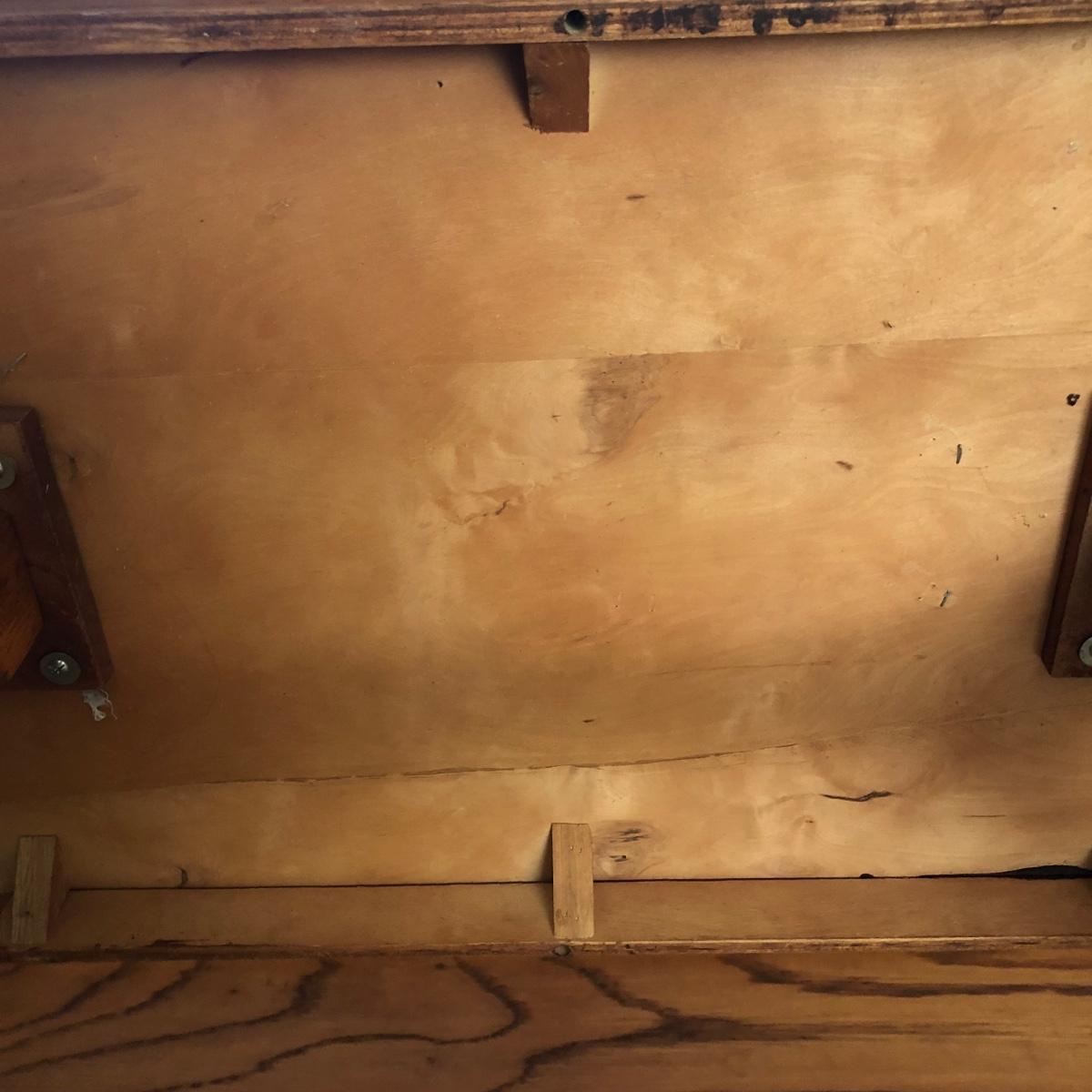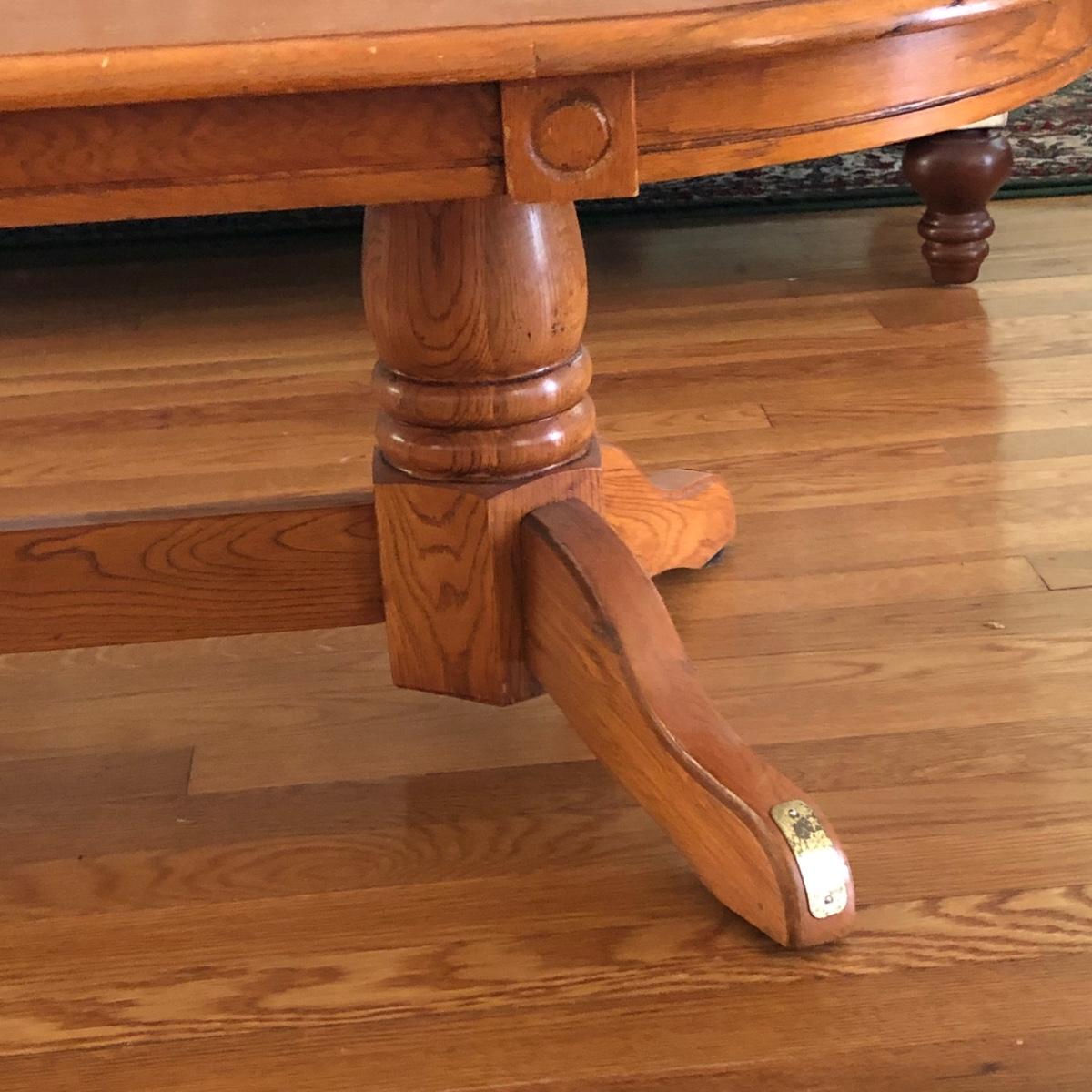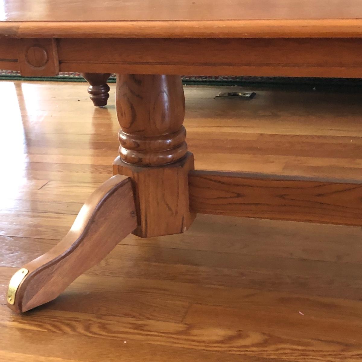 This coffee table measures 24” x 53.5” x 17.5”. Pls note scratches and coffee ring; it appears some sanding and stain would make this table like new. The table appears to be wood. Local pick up only.