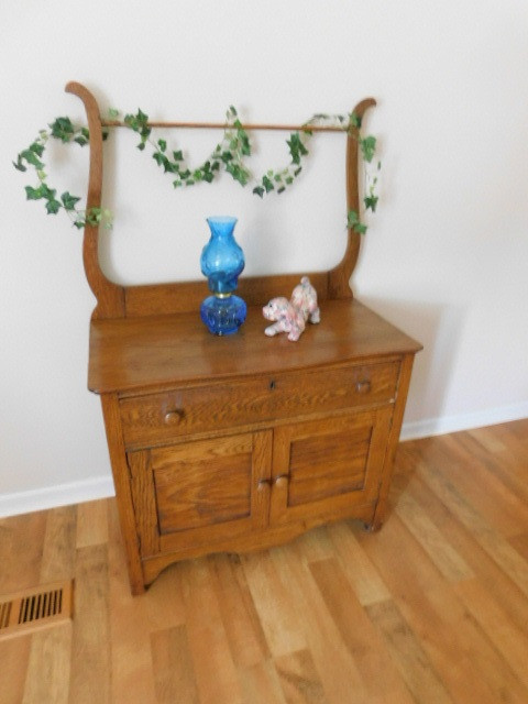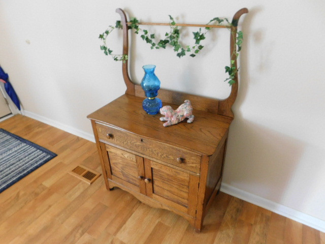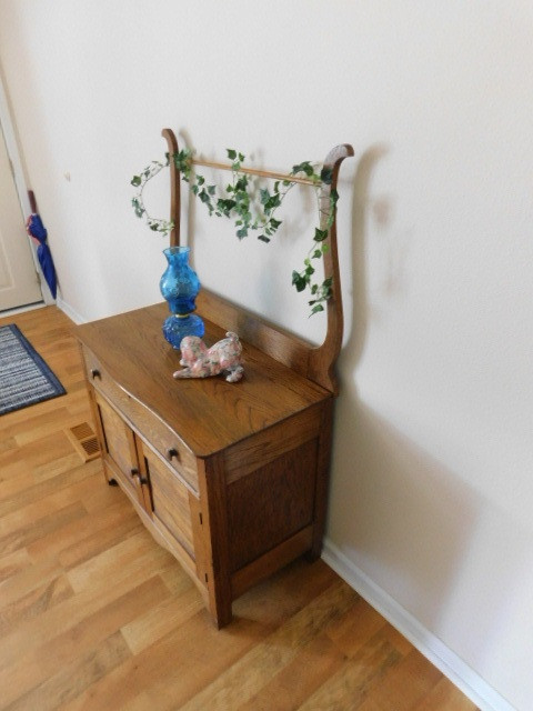 Oak Commode with Hand Towel Bridge (No Contents)