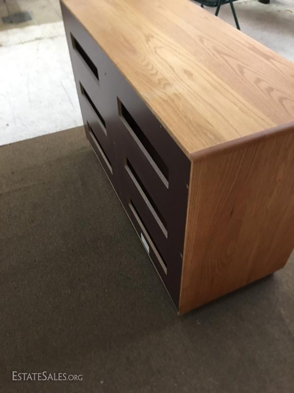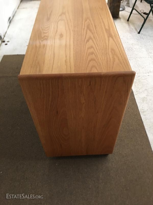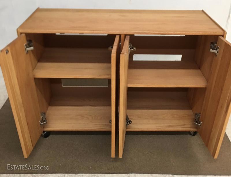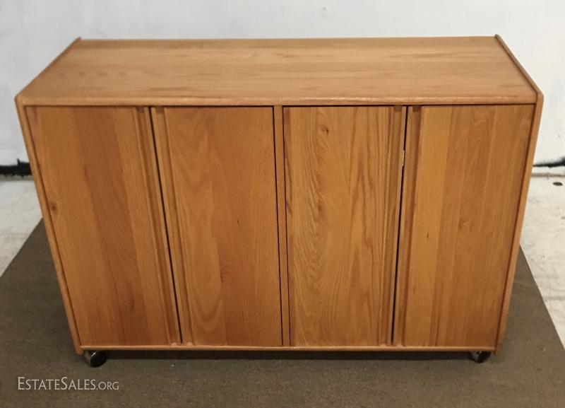 Oak credenza, one of several pieces in this auction. Measures 47"x19", 32" tall on castors.