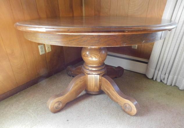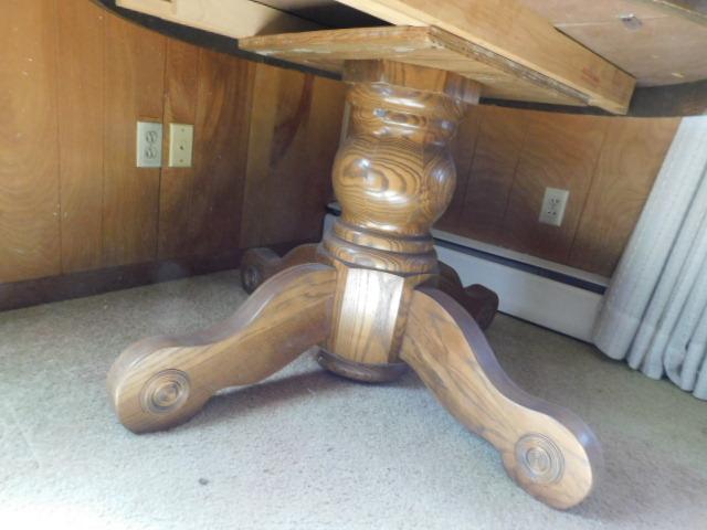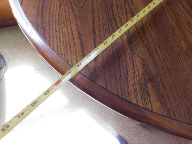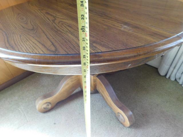 Oak Dining Table Icludes Two Leaves 48"x29" (Plus Leaves) very sturdy and nice appearance. Expect some wear and scratches