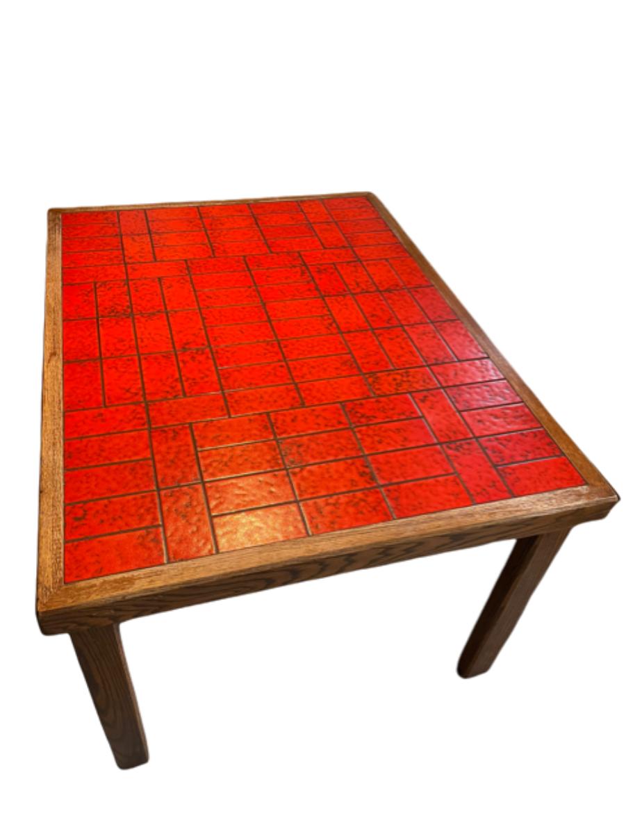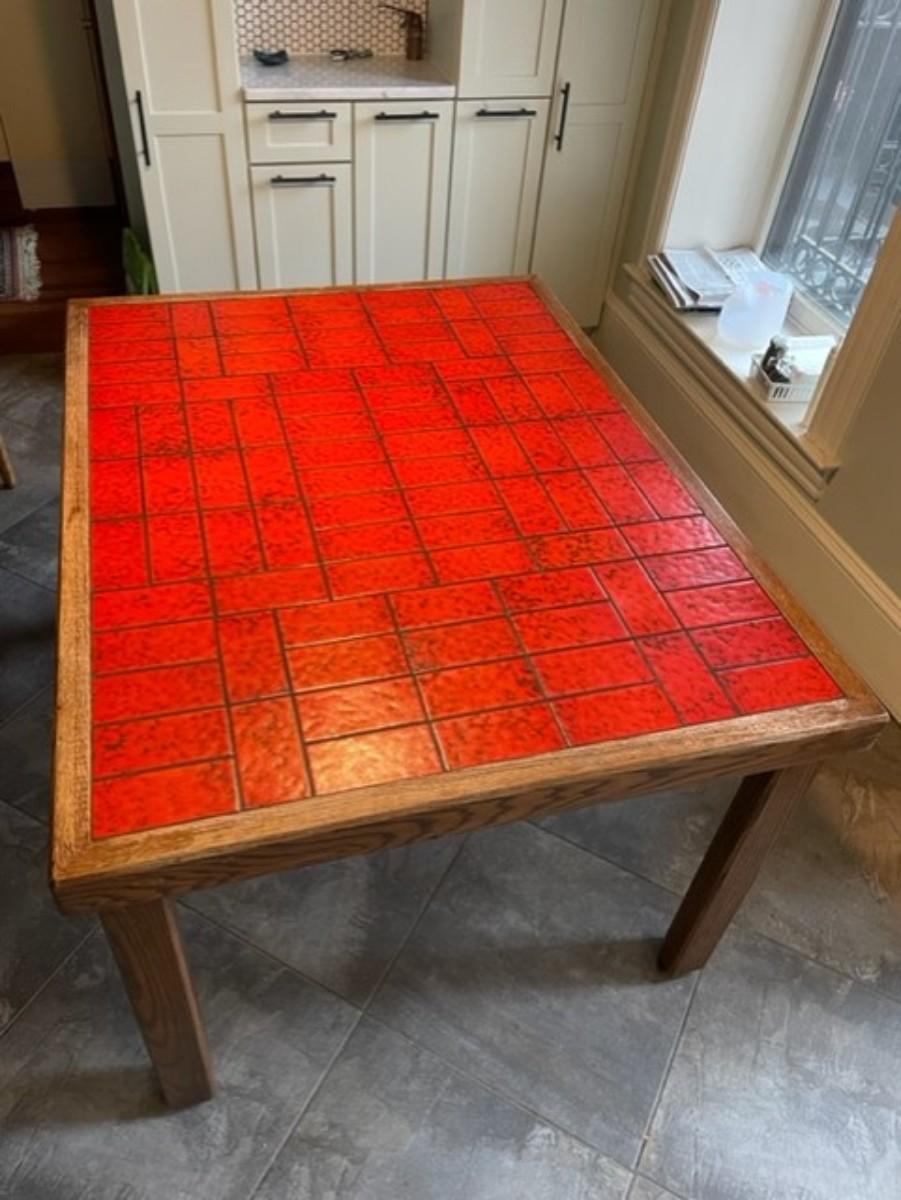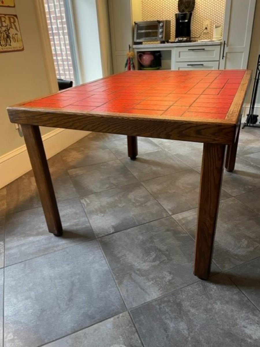 Oak Dining Table With Red Tile Inlay Top - PY11669