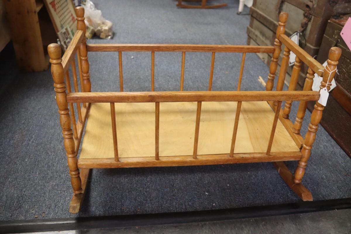 Oak Doll Bed - Rocking Cradle - 25 x 13 x 18 inches