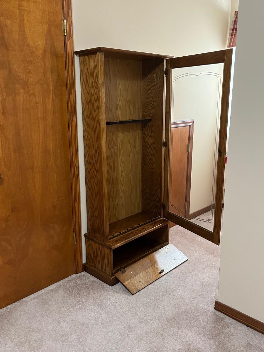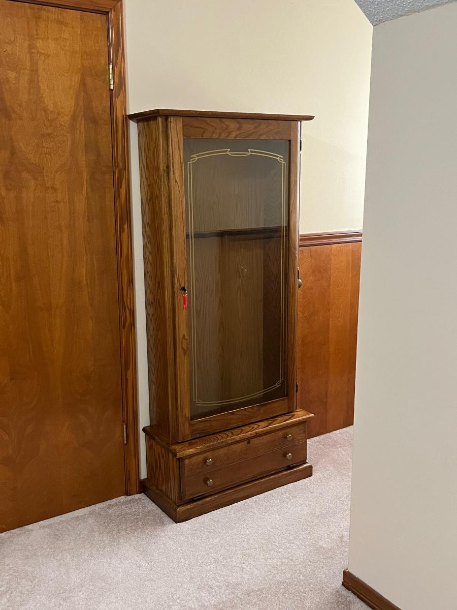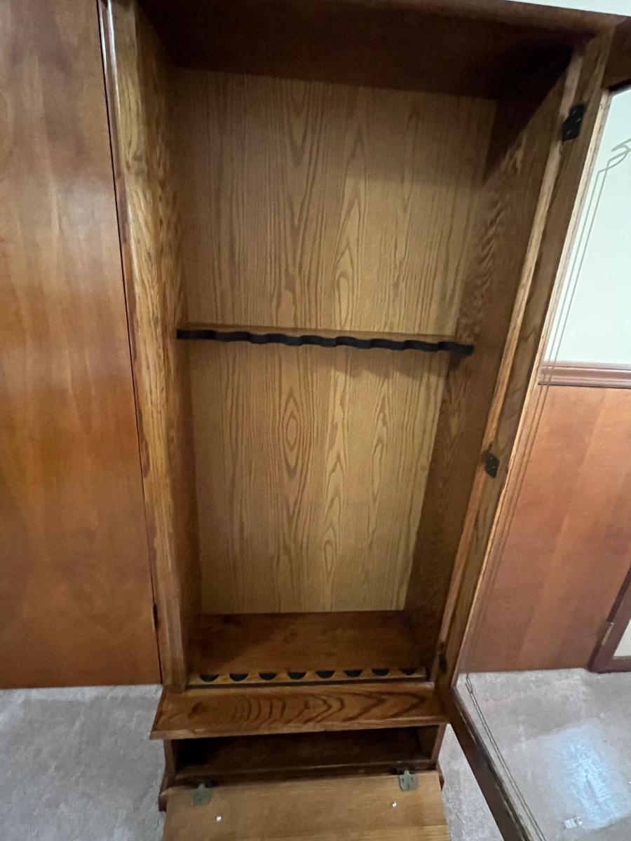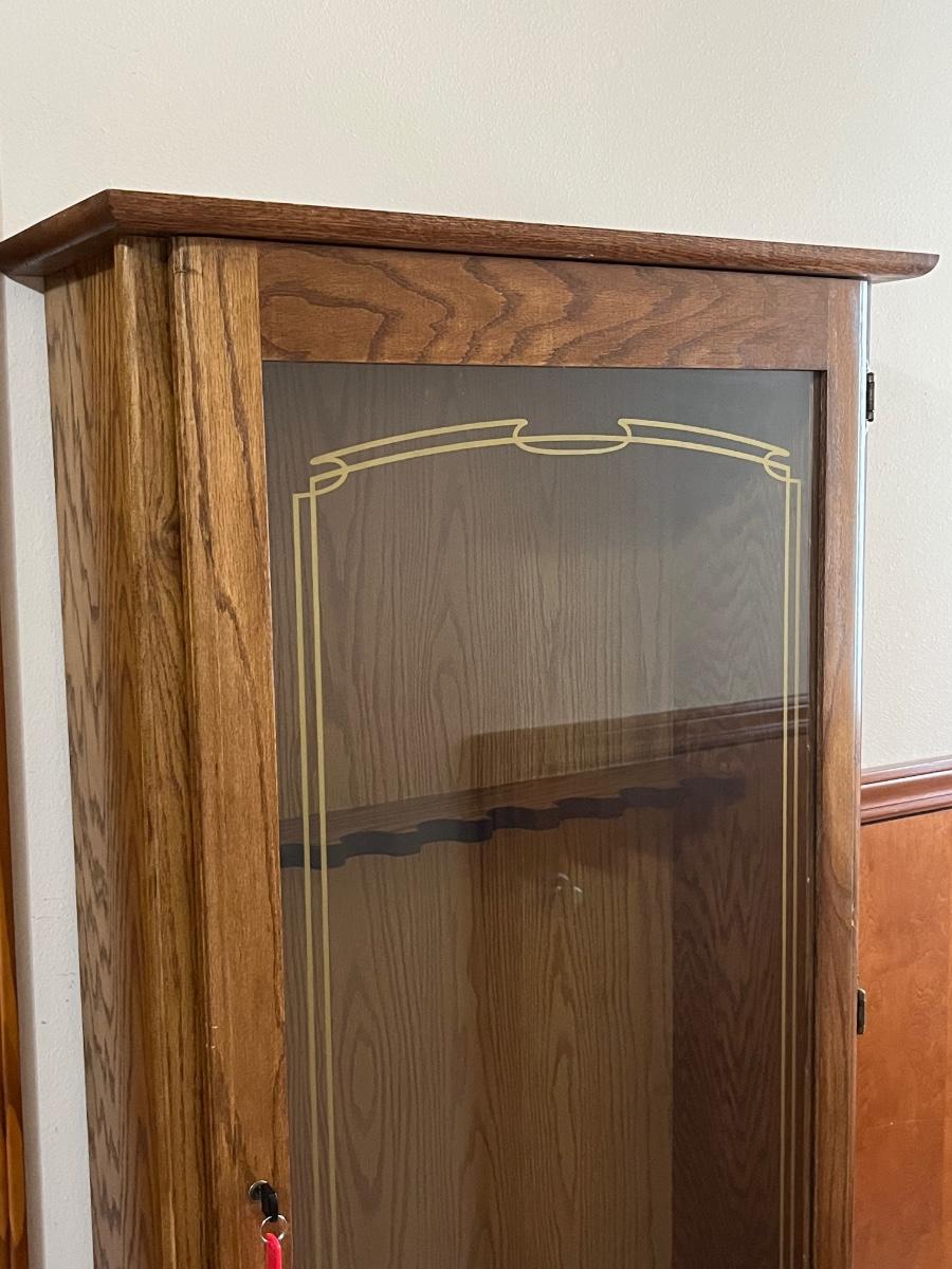 Oak Gun/Rifle Cabinet ~ With Locking Door Bottom Cabinet