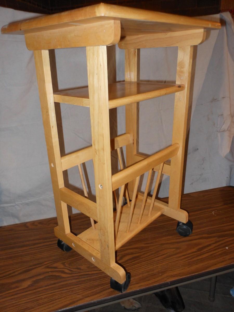 OAK END TABLE WITH MAGAZINE RACK