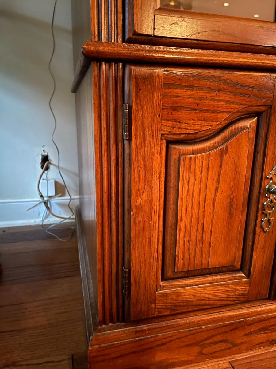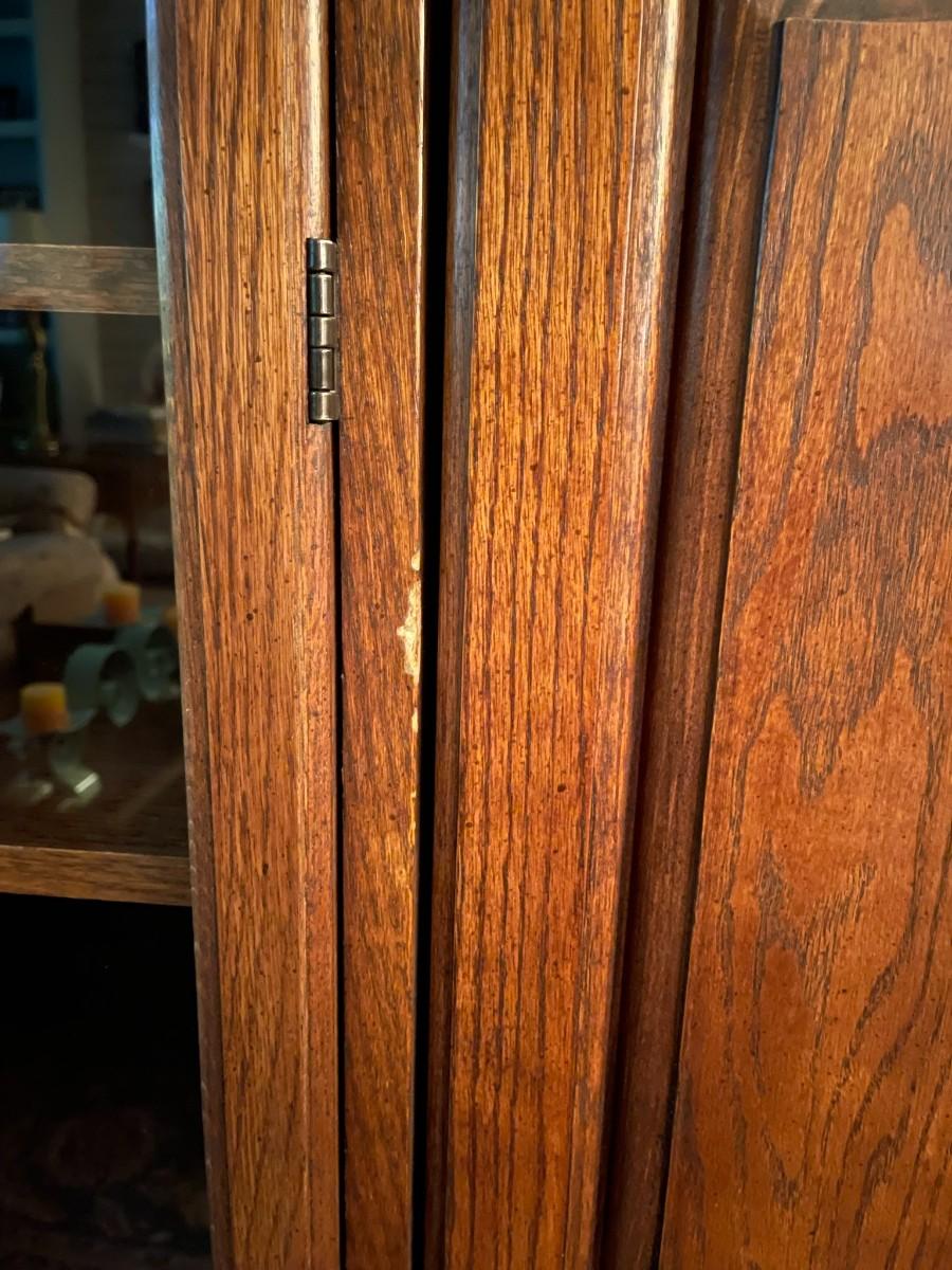 Small chip between glass doors and solid doors, should easily be retouchable.