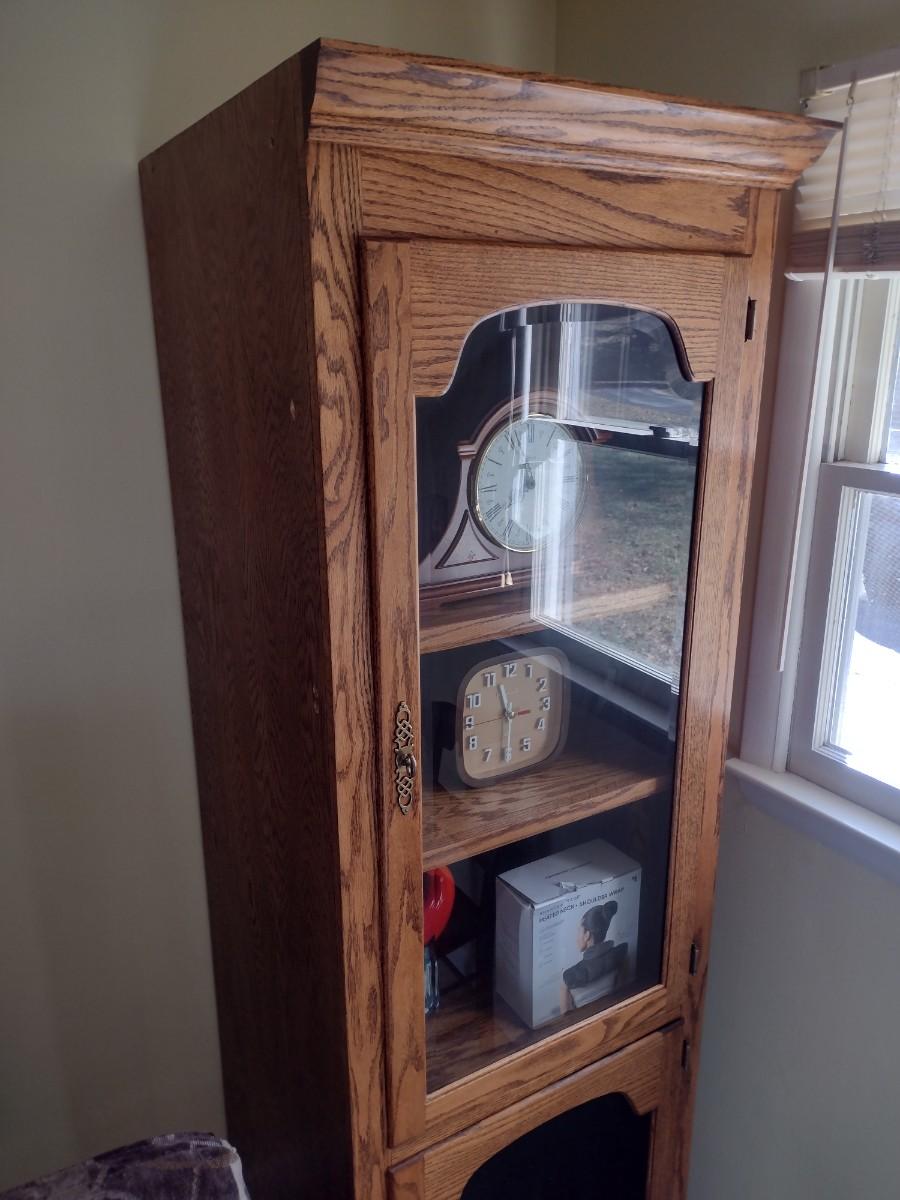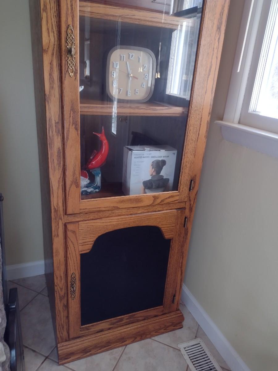 Oak Finish Display Cabinet with Right-Hand Glass Door (No Contents)