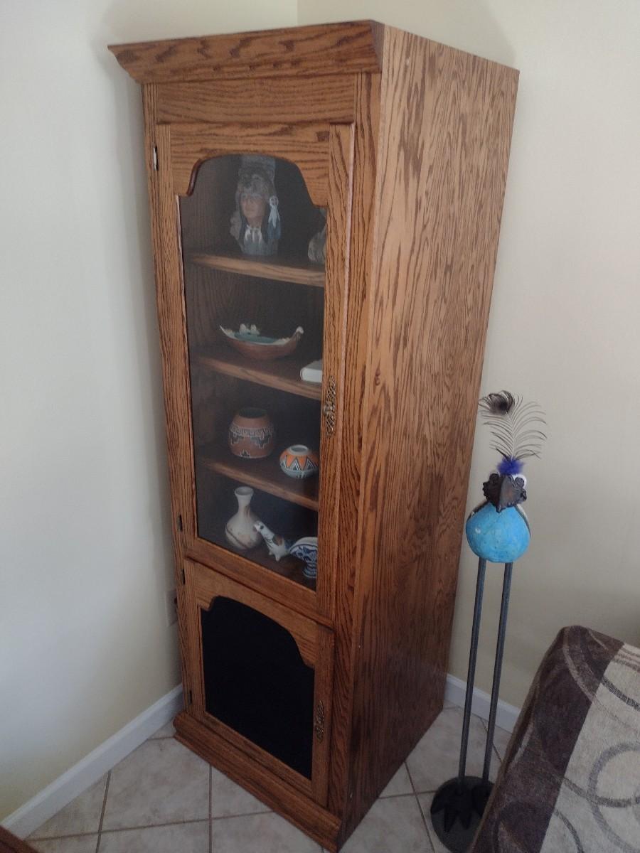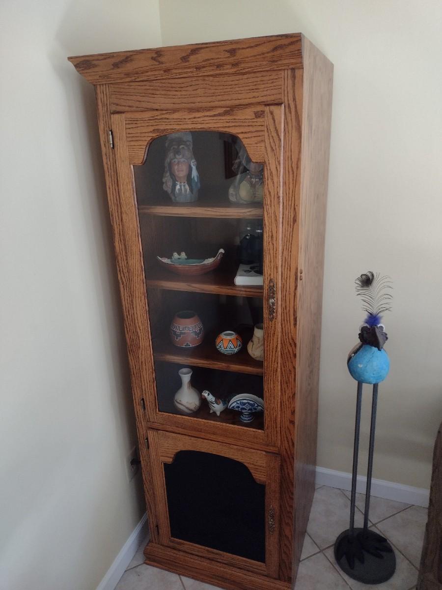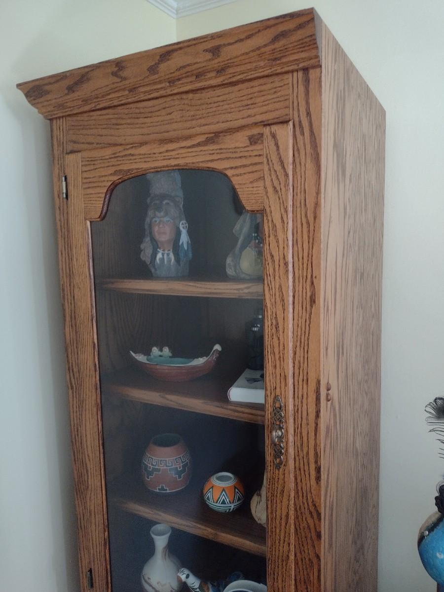 Oak Finish Display Cabinet with Left-Hand Glass Door (No Contents)