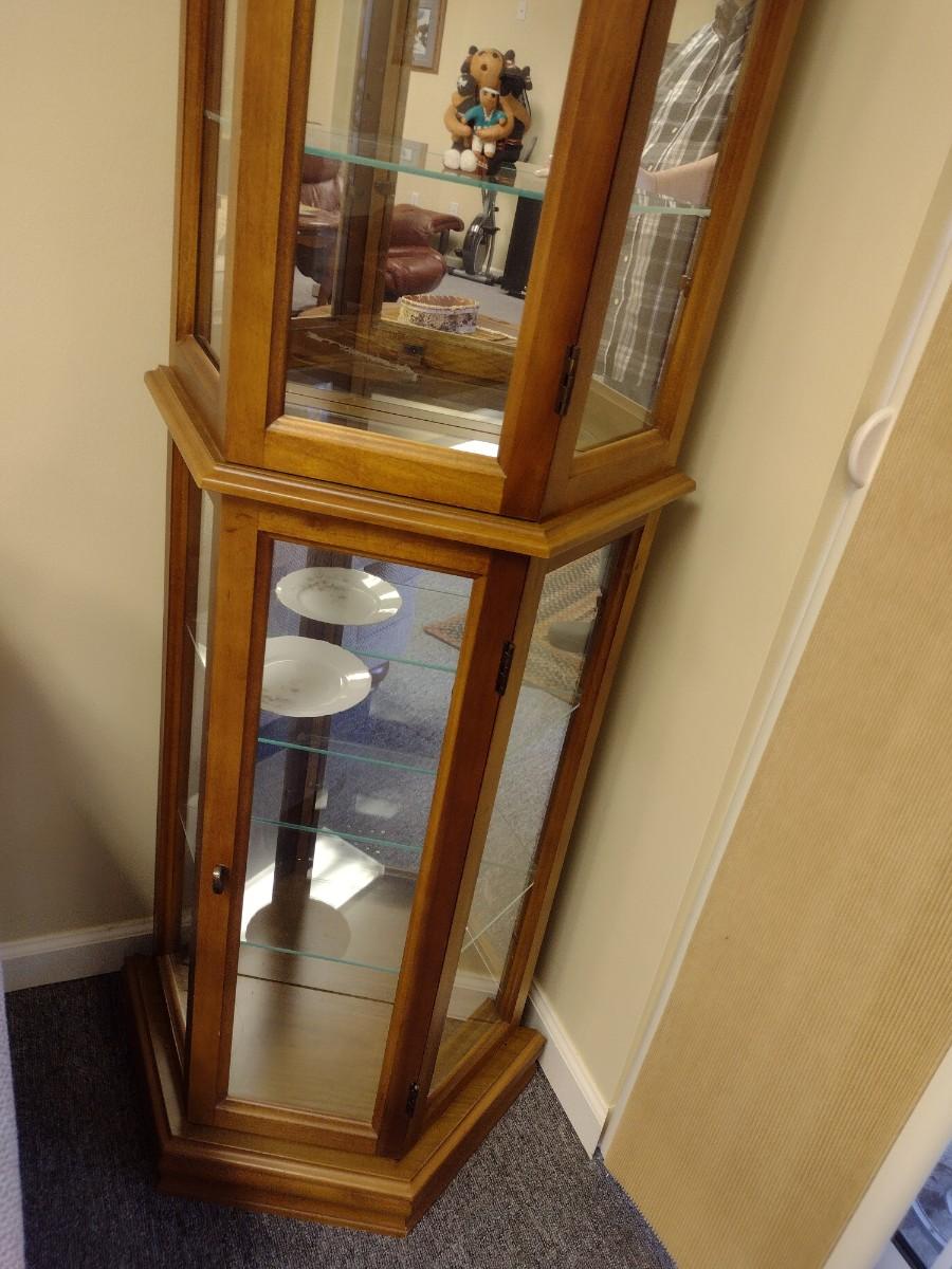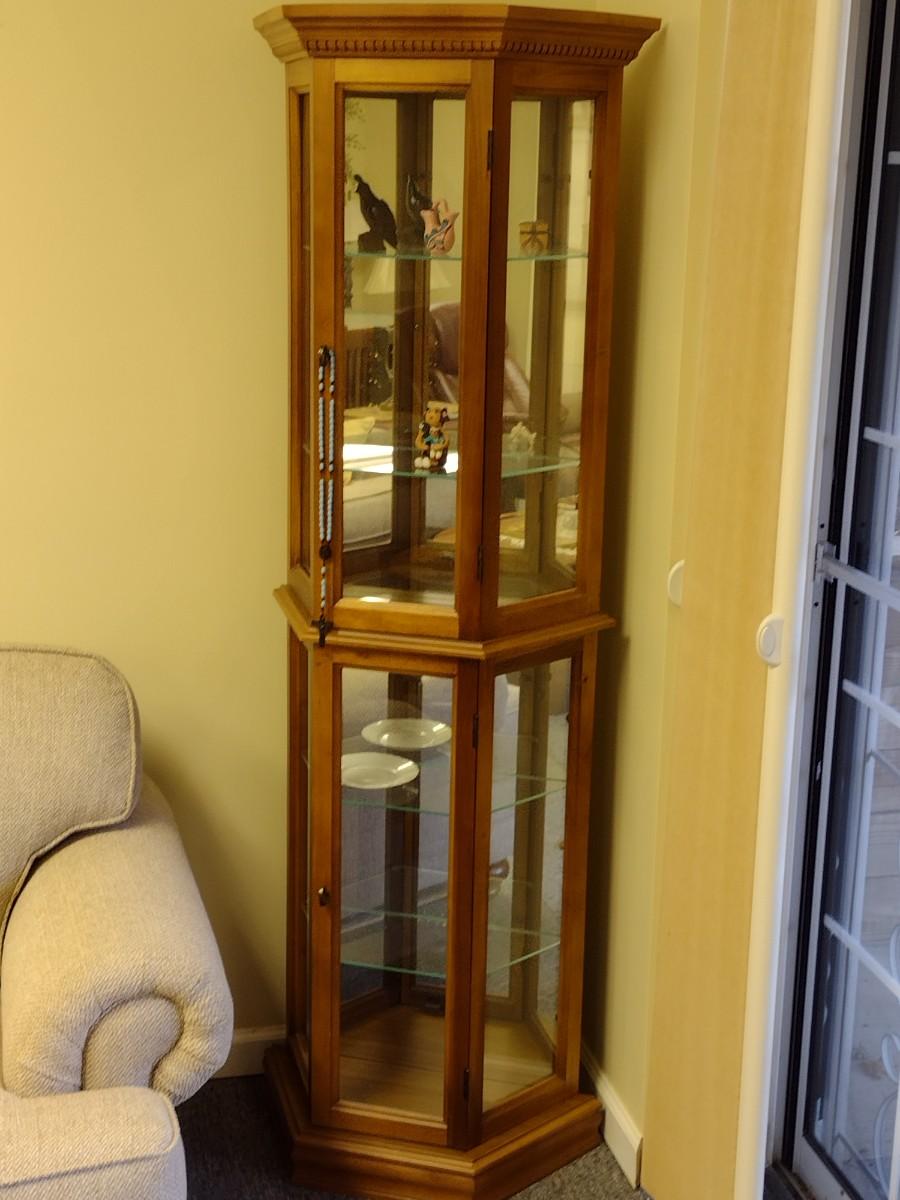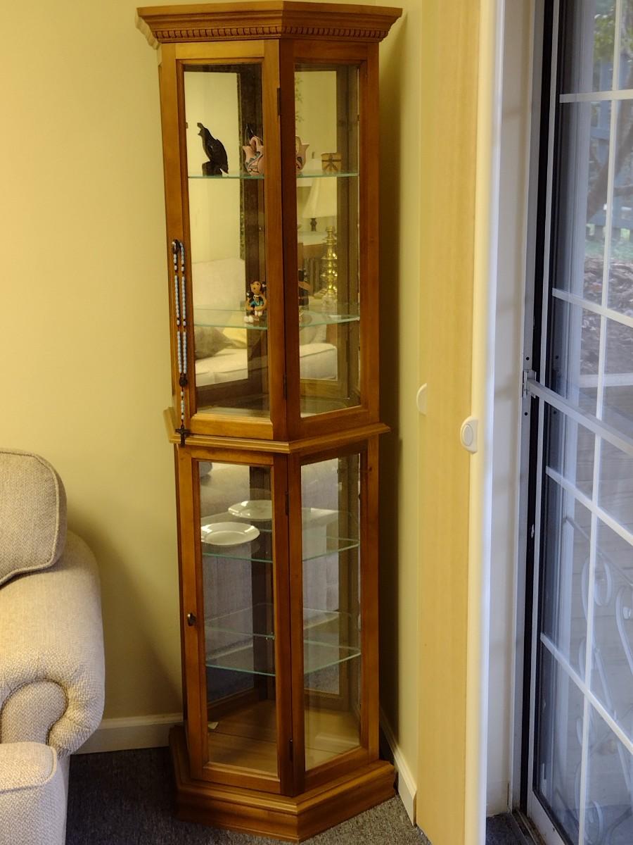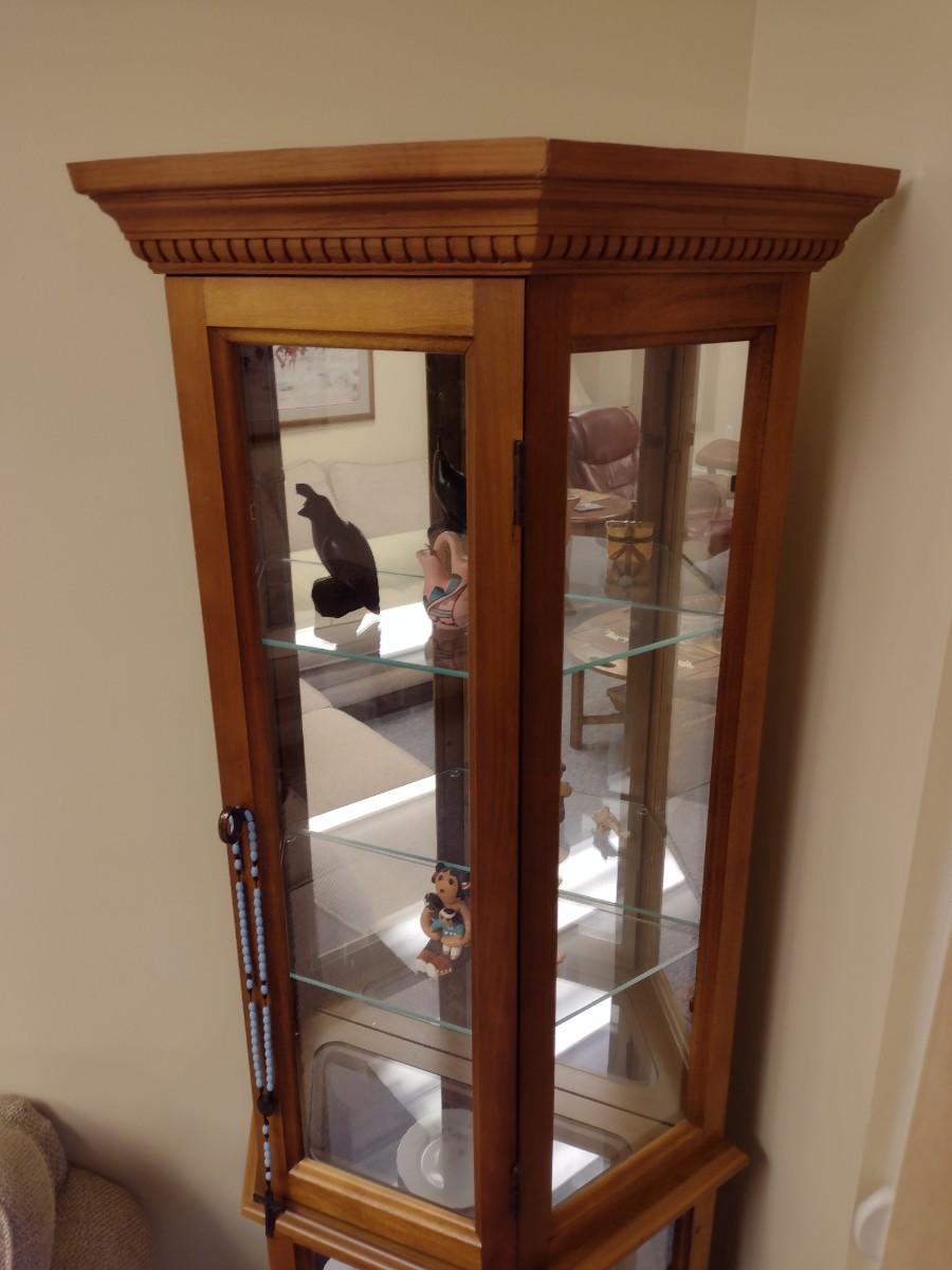Oak Finish Glass Shelf Curio Cabinet (No Contents) Choice A