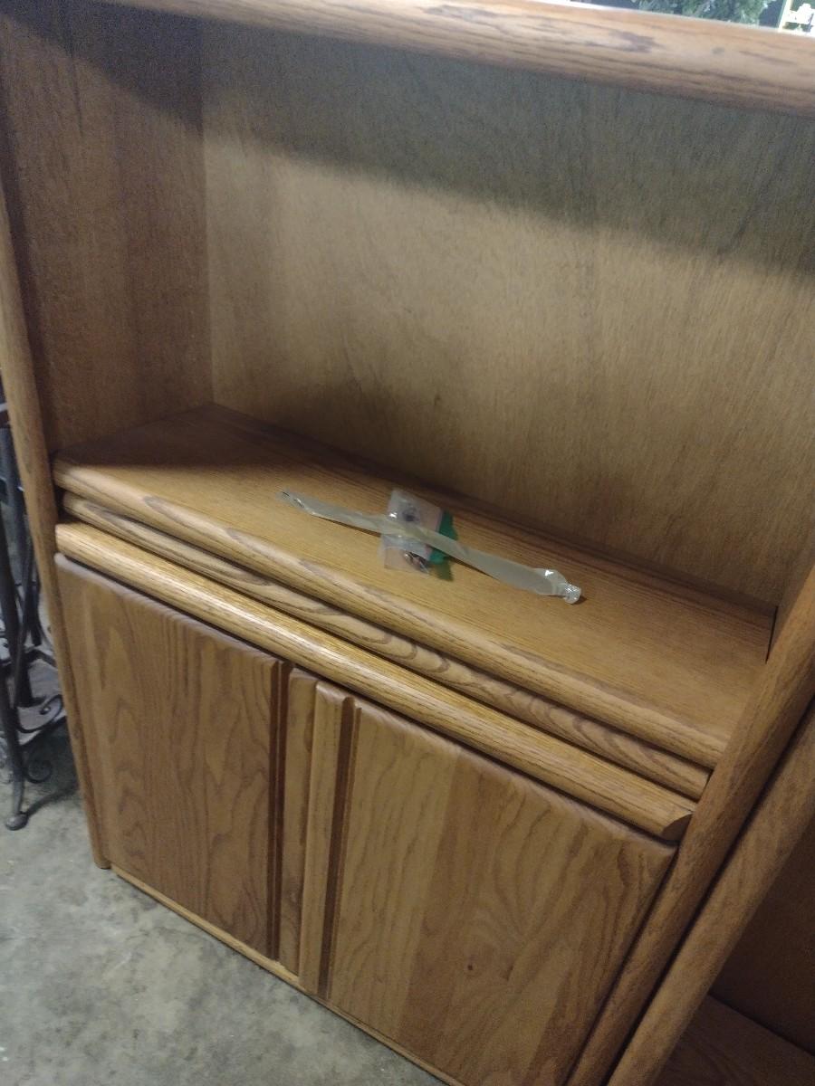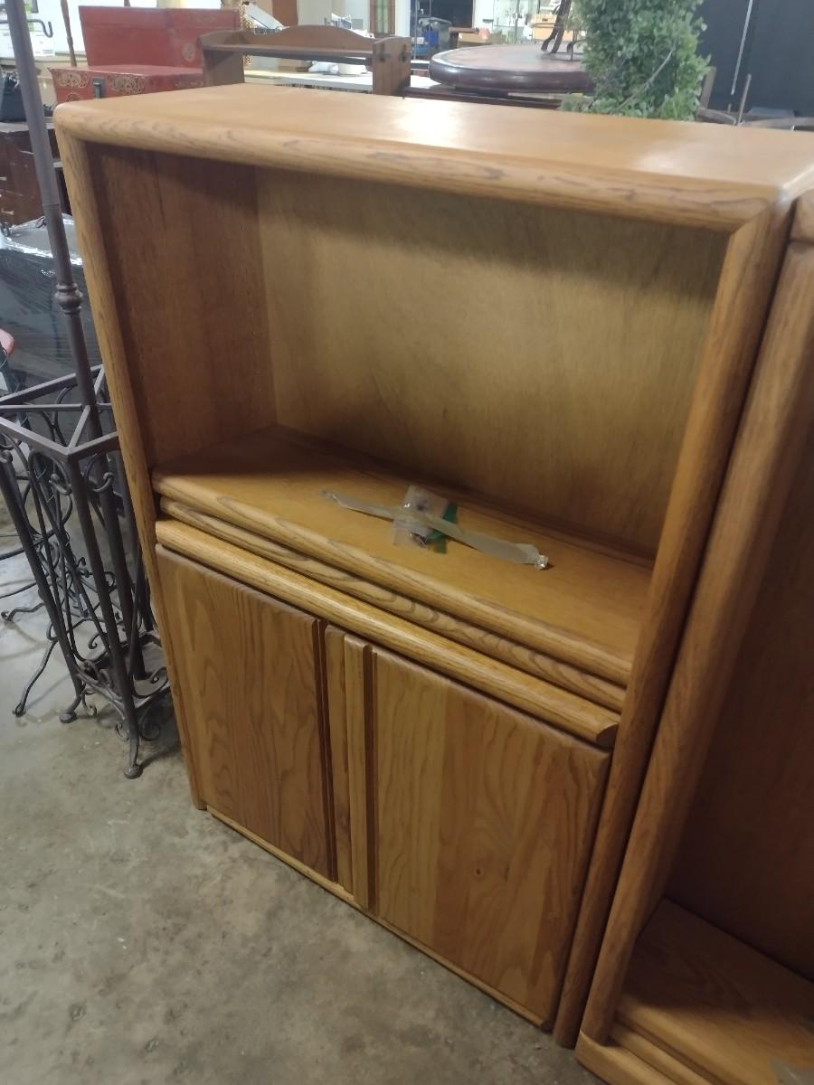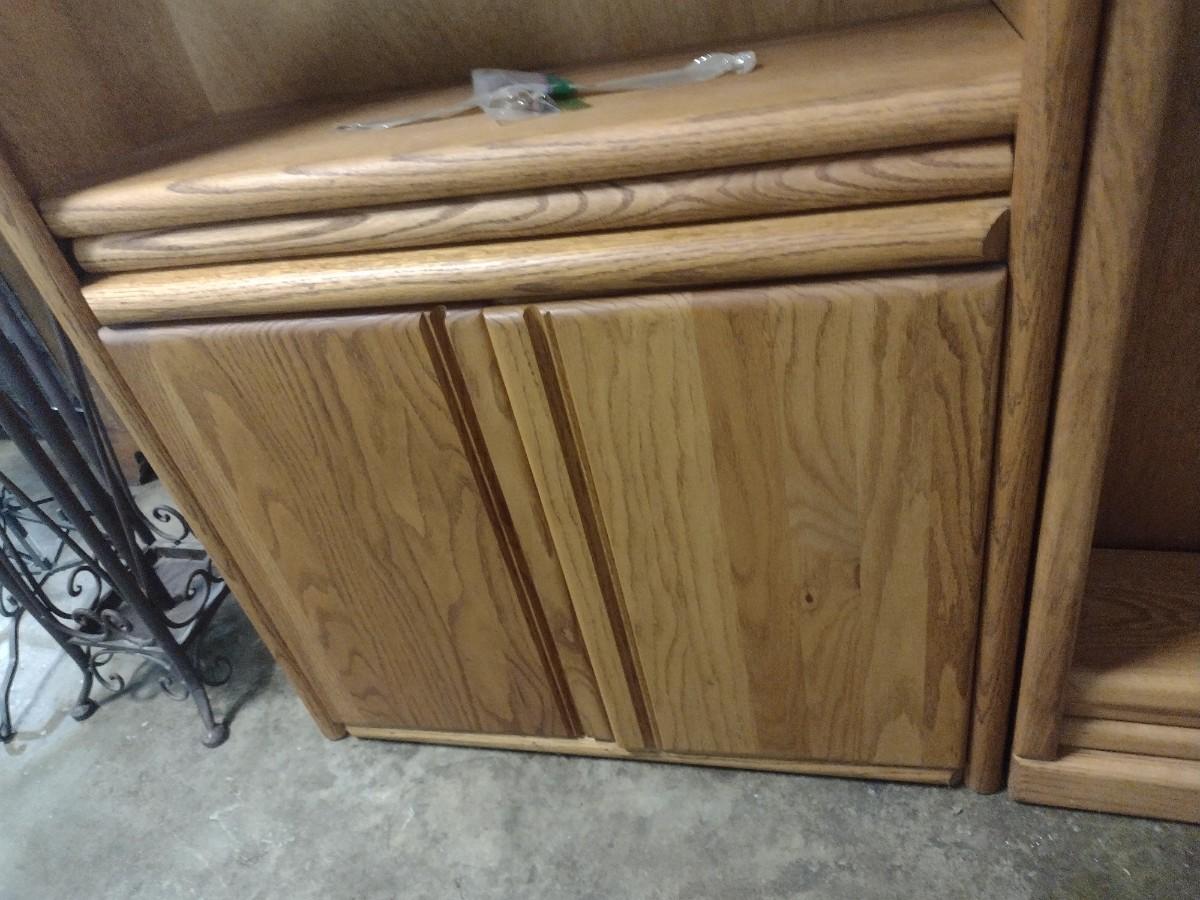 Oak Finish Quality Library Cabinet with Adjustable Shelves and Lower Storage