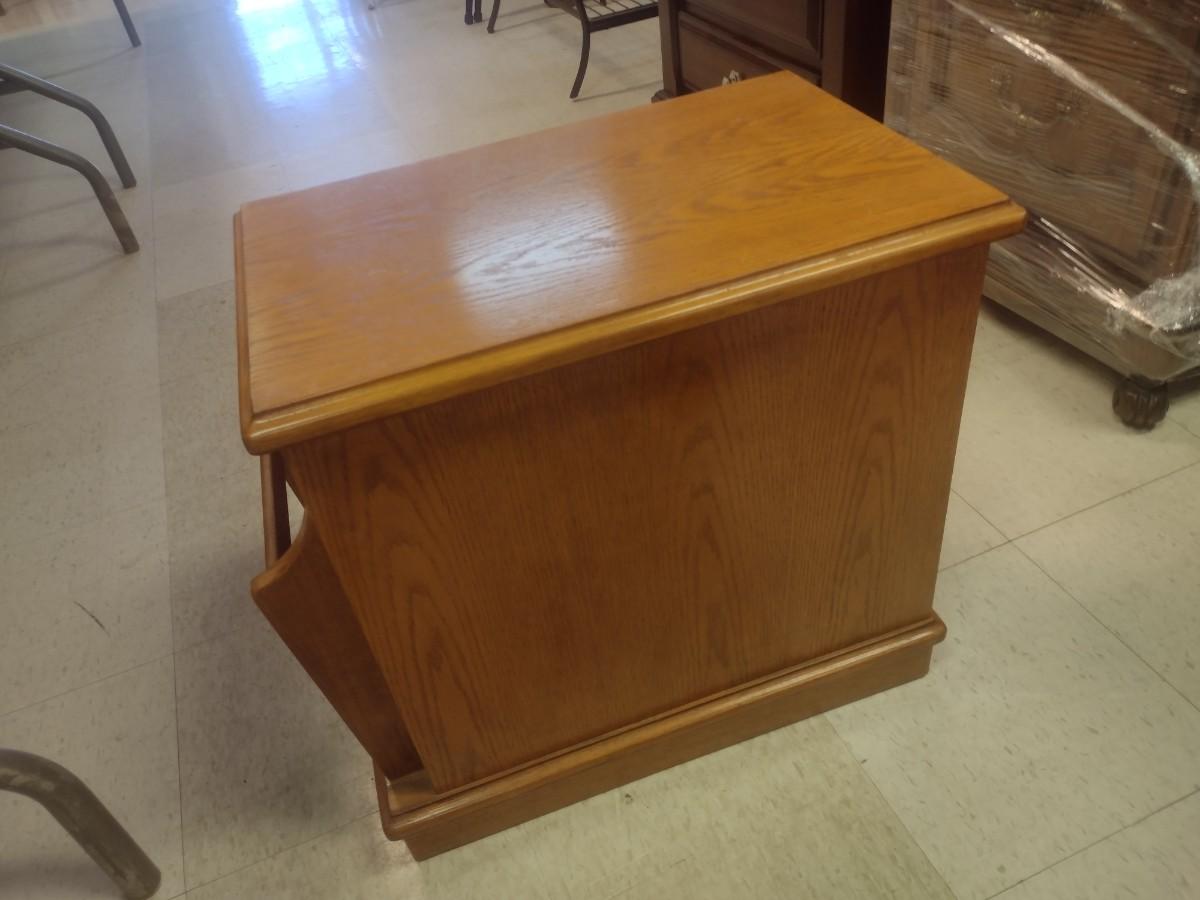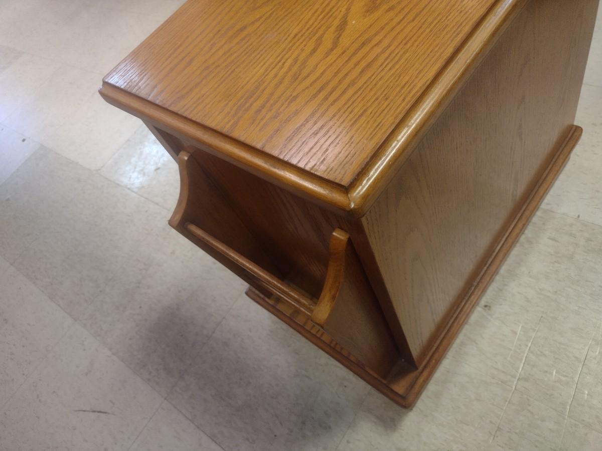 Oak Finish Side Table with Storage Compartment and Magazine Rack Choice A