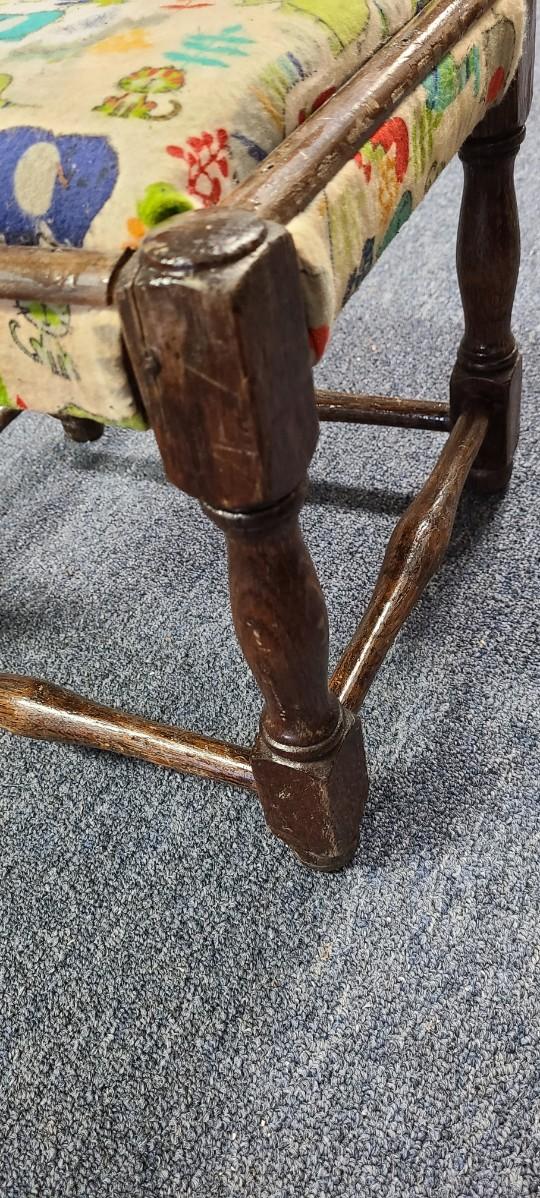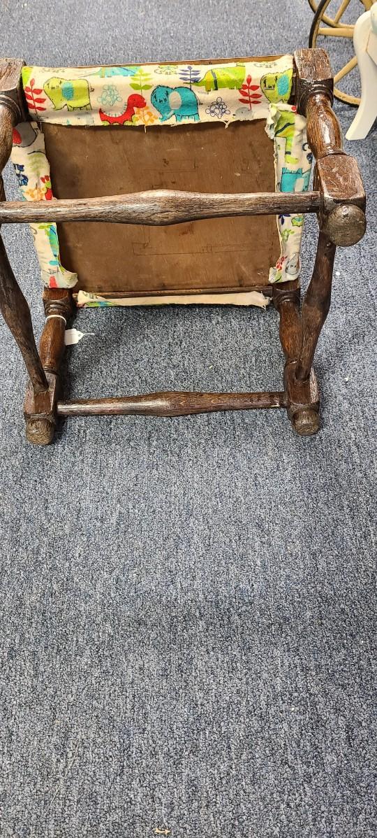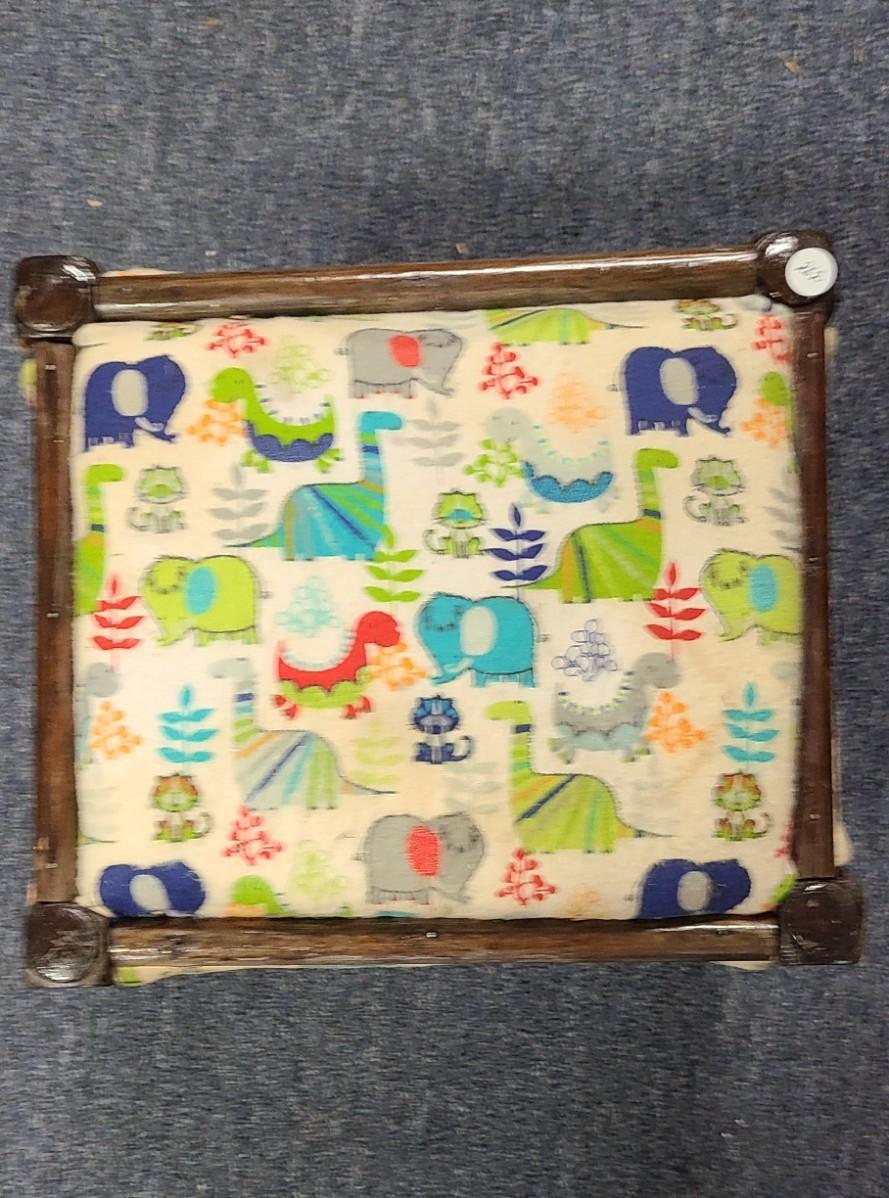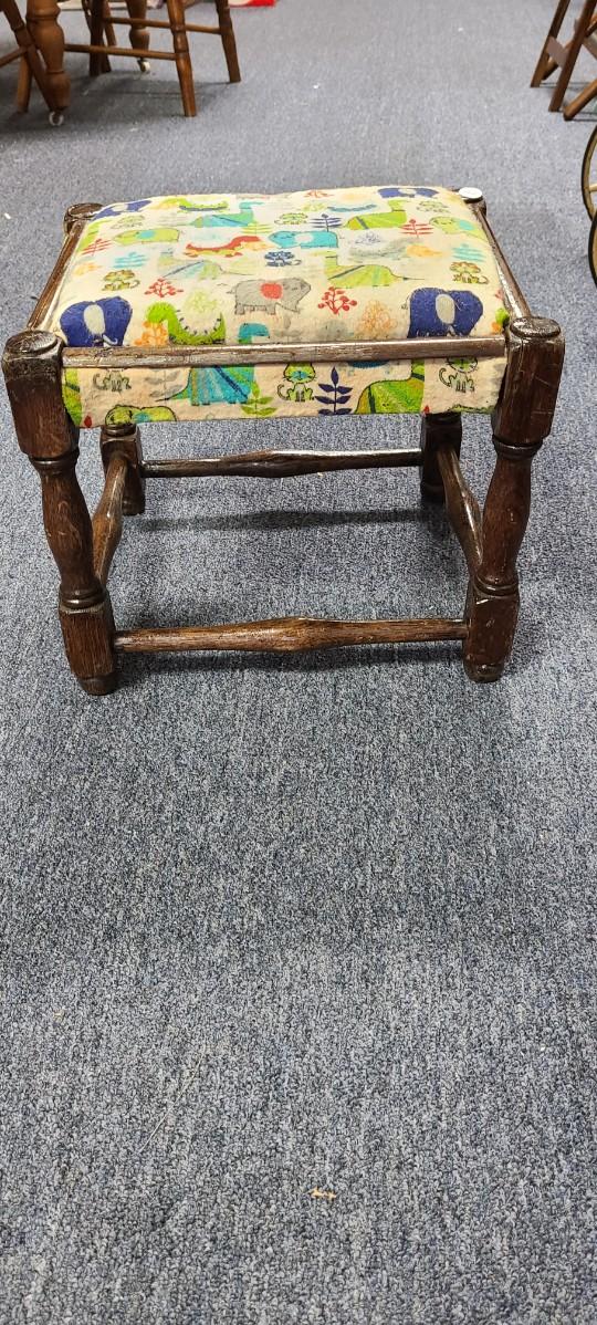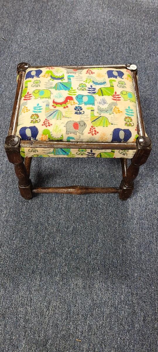 Oak Footstool with Child's Print Fabric - 13 x 12 inches