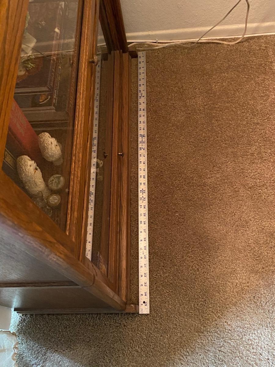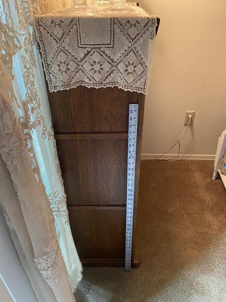Oak & Glass Three Door Lawyer Bookcase Cabinet. In good condition. There is a light in the top cabinet, not working, may need new bulb. Magnetic closure to keep doors secure when closed. One piece, does not break apart. About 4' tall and 3' wide. Contents not included. **Off site in Brea, owner downsizing. Pick up will be as early as July 22nd at 2pm, must be scheduled before the 29th.**