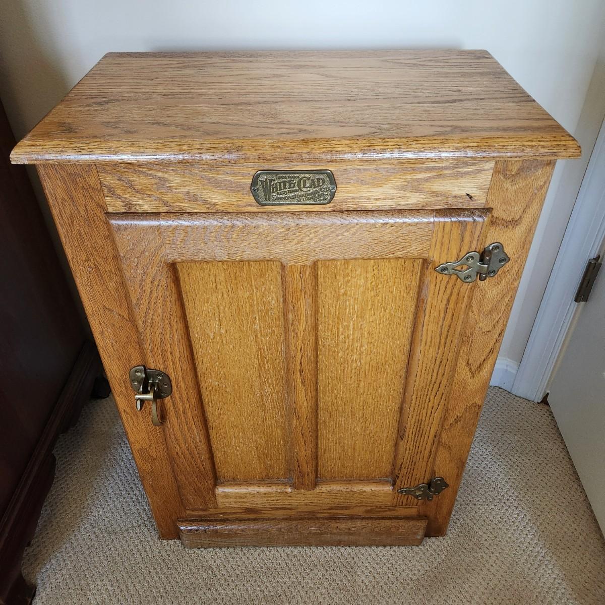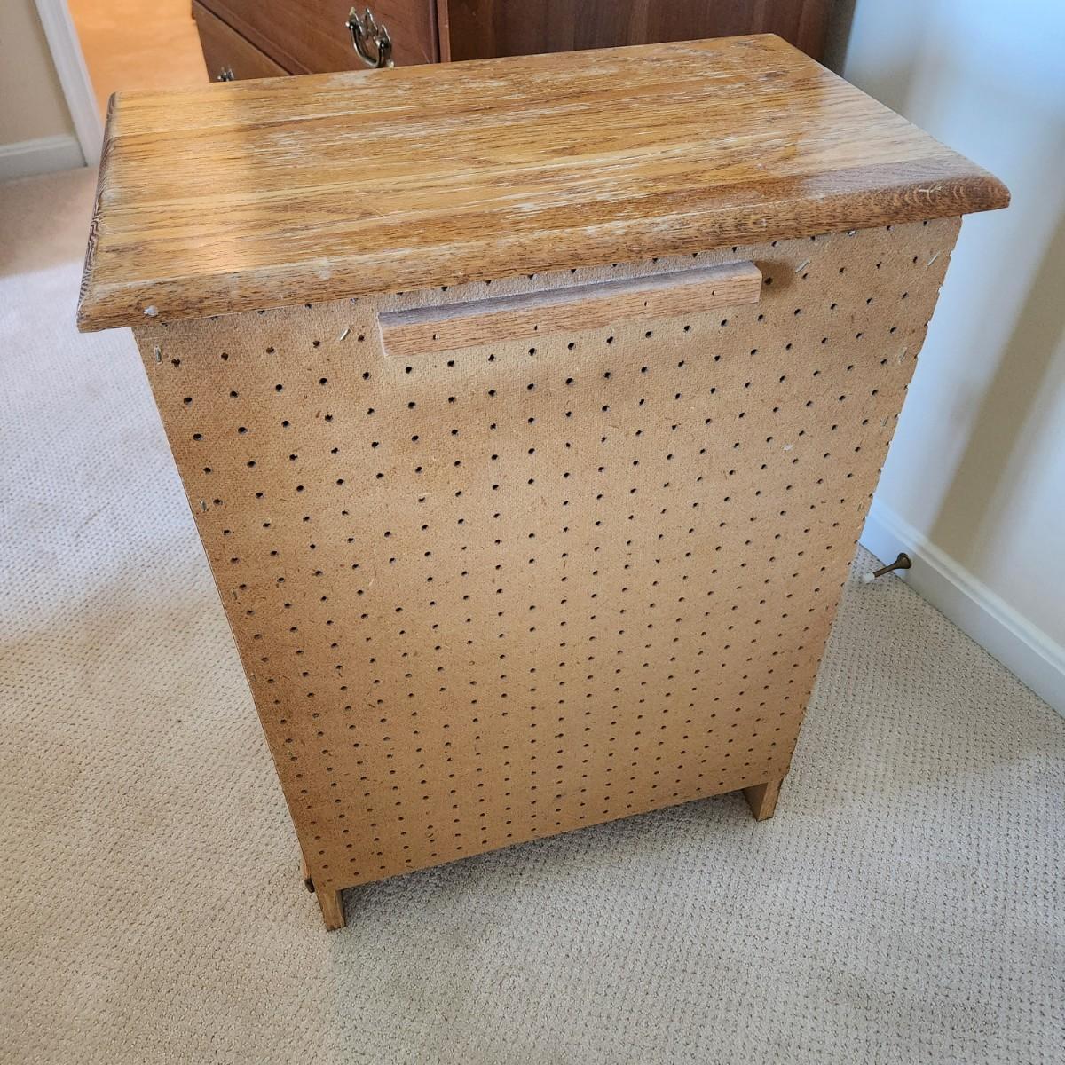 Vintage White Clad Ice Box Style Oak Hamper 21x12x30