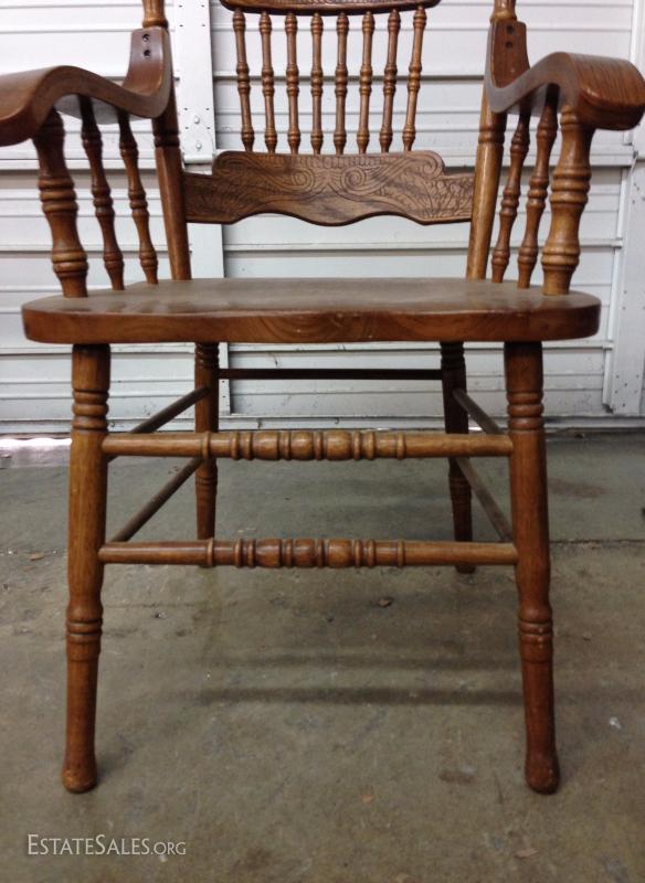 Beautiful scroll art and decorative spindles make this a great chair. Please view photos at full screen size for best detail.