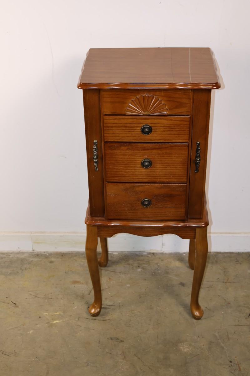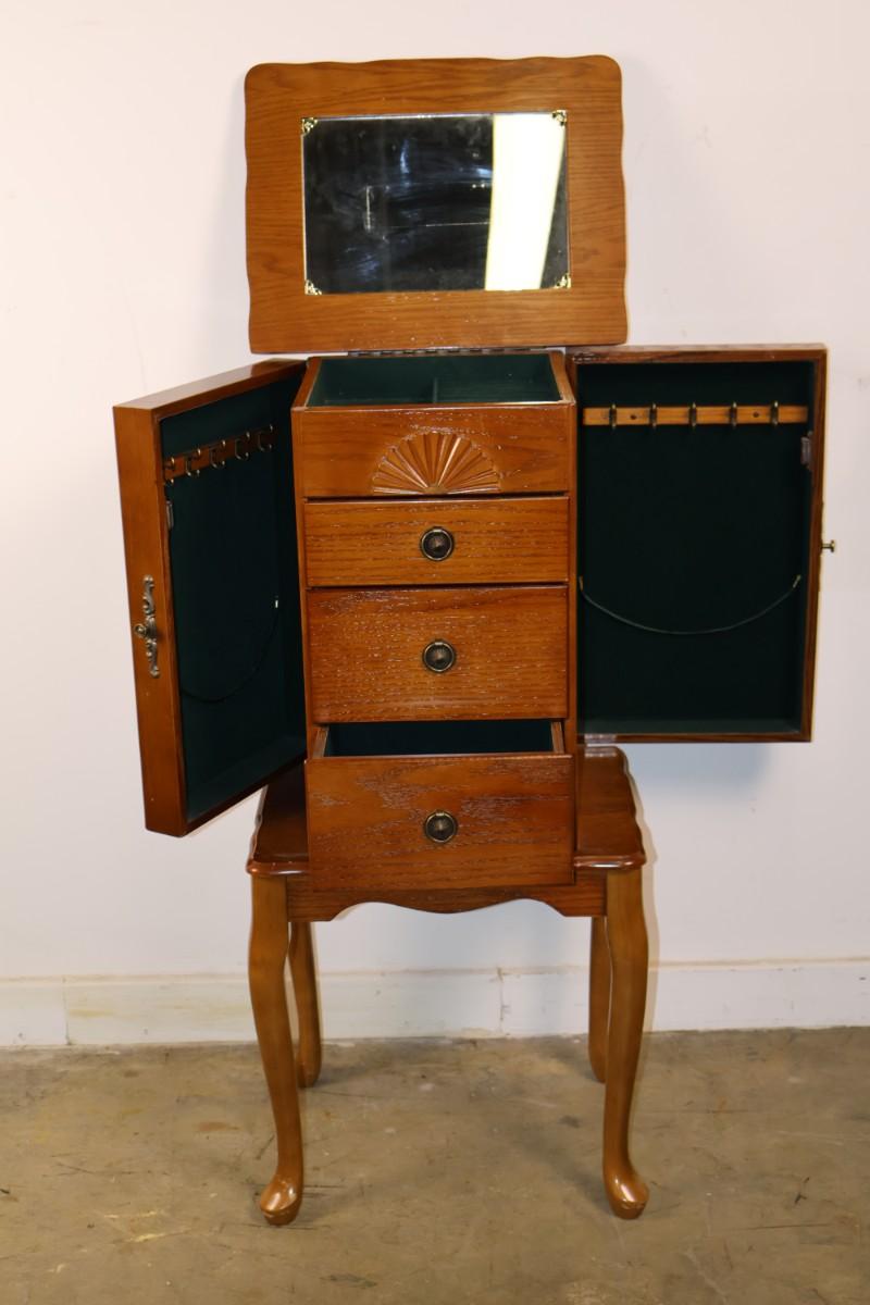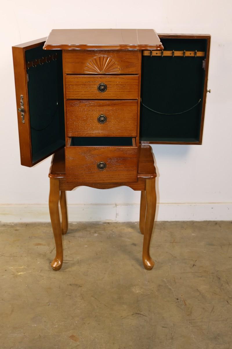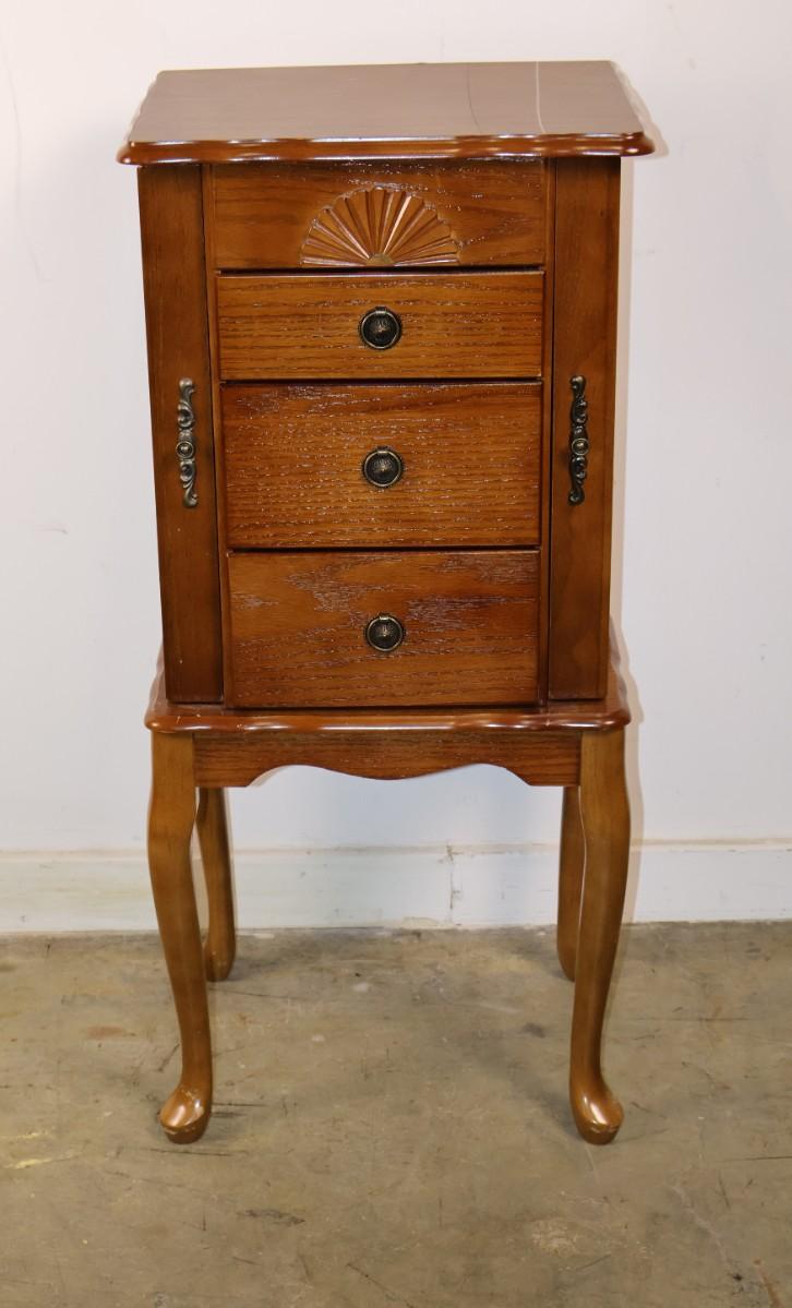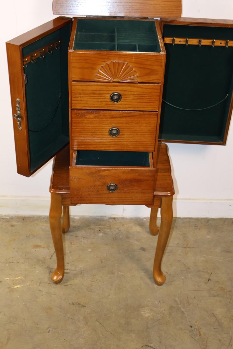 Oak jewelry chest. 16 3/4" x 13" x 37"