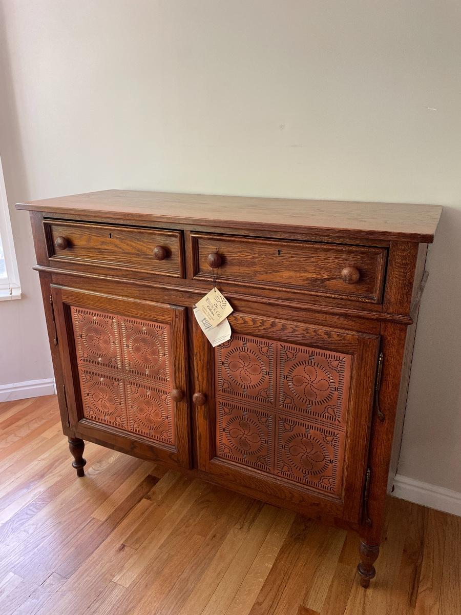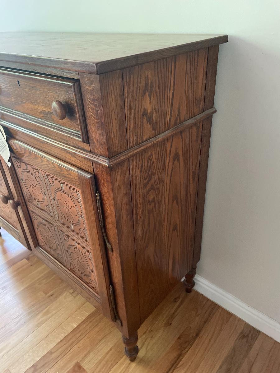 #134 Oak Kitchen Sideboard Buffet w/Tin Doors