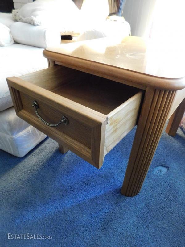 Oak side table with drawer. 1 of 2 of same size. Some wear on the top of each. Equal condition.