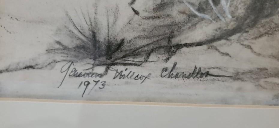 Original Charcoal and Pastel - Signed / Genevieve Willcox Chaneltan Circa 1973 Framed and Matted