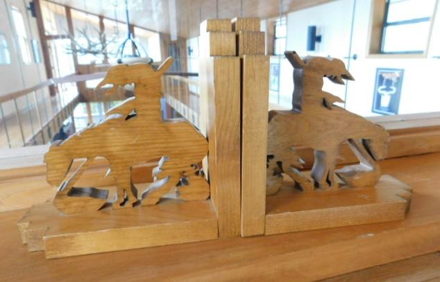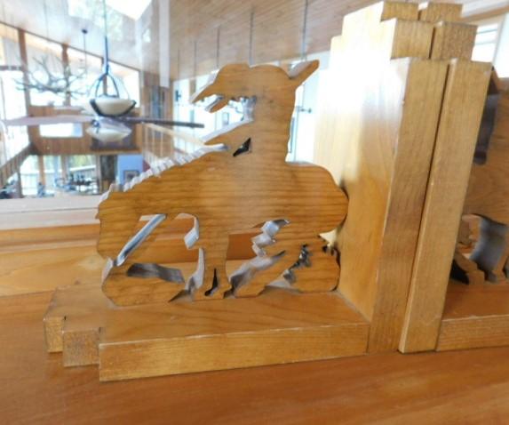 Oak Natural Wood Finish Cut Out 'End of the Trail' Book Ends 7"x7"