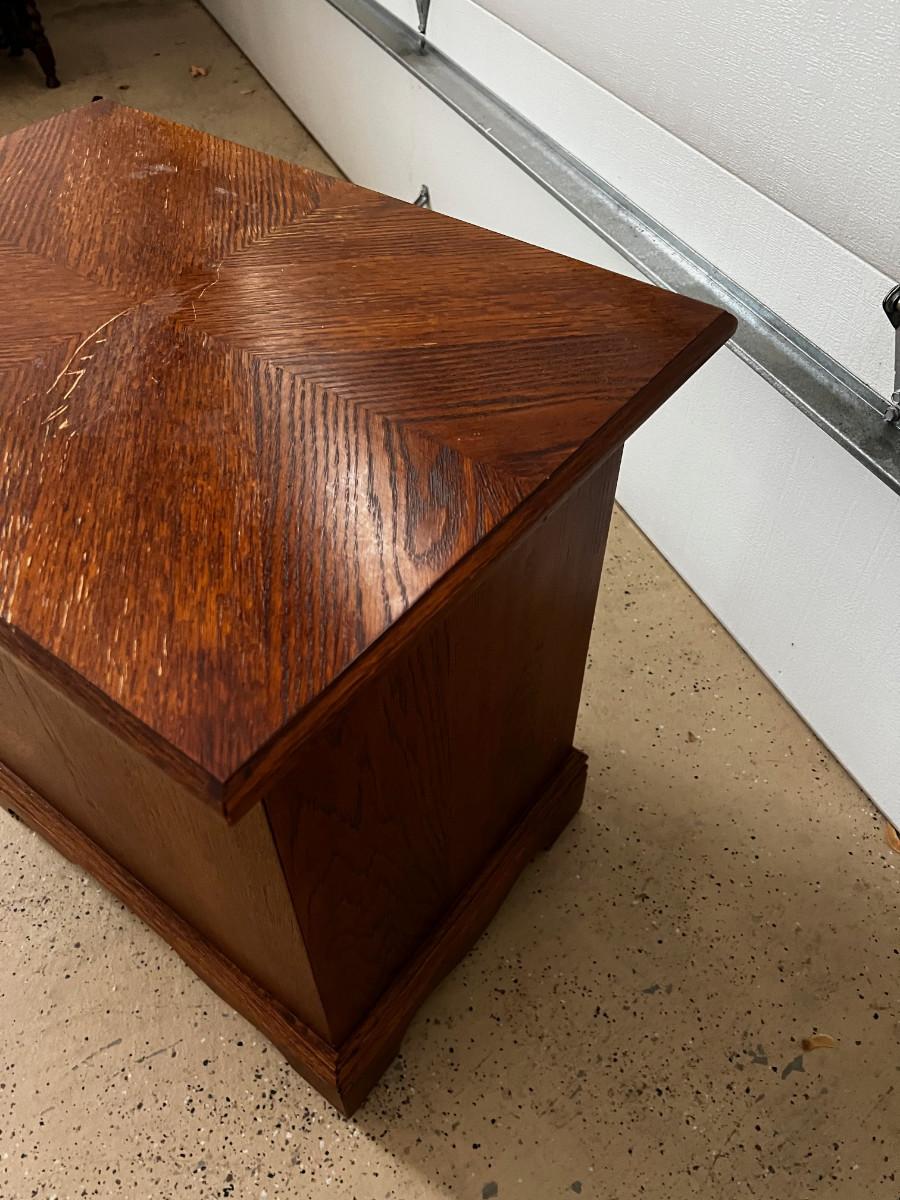 19 X26X 26 Tall. Show a bit of wear on the top.