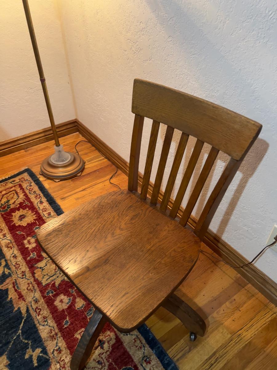 Secretary Chair cause she didn't get to have arms on her chair. Good Condition, Used. Bring Help! Upstairs.