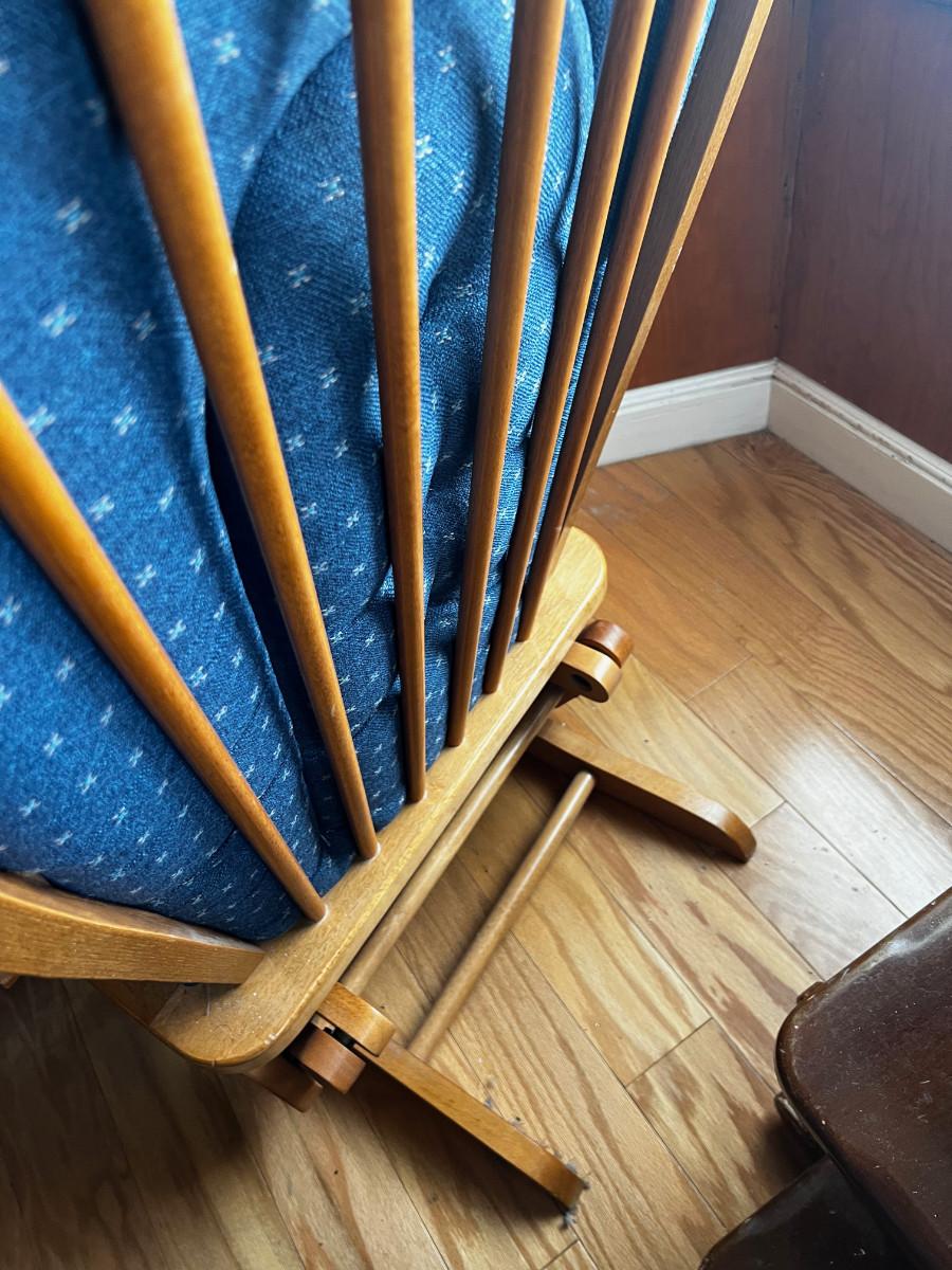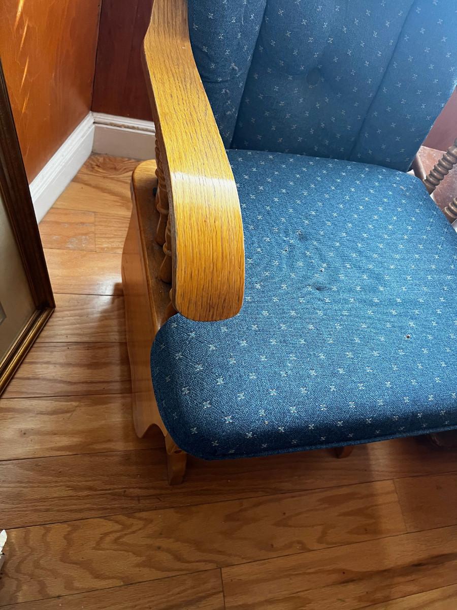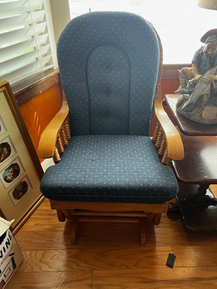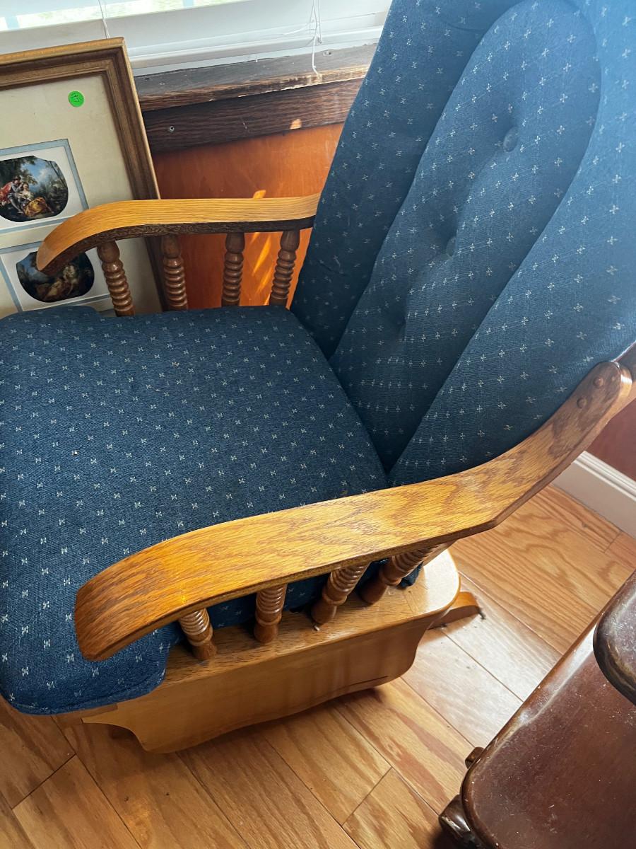 Oak Platform Glider Rocker, Blue Cushion