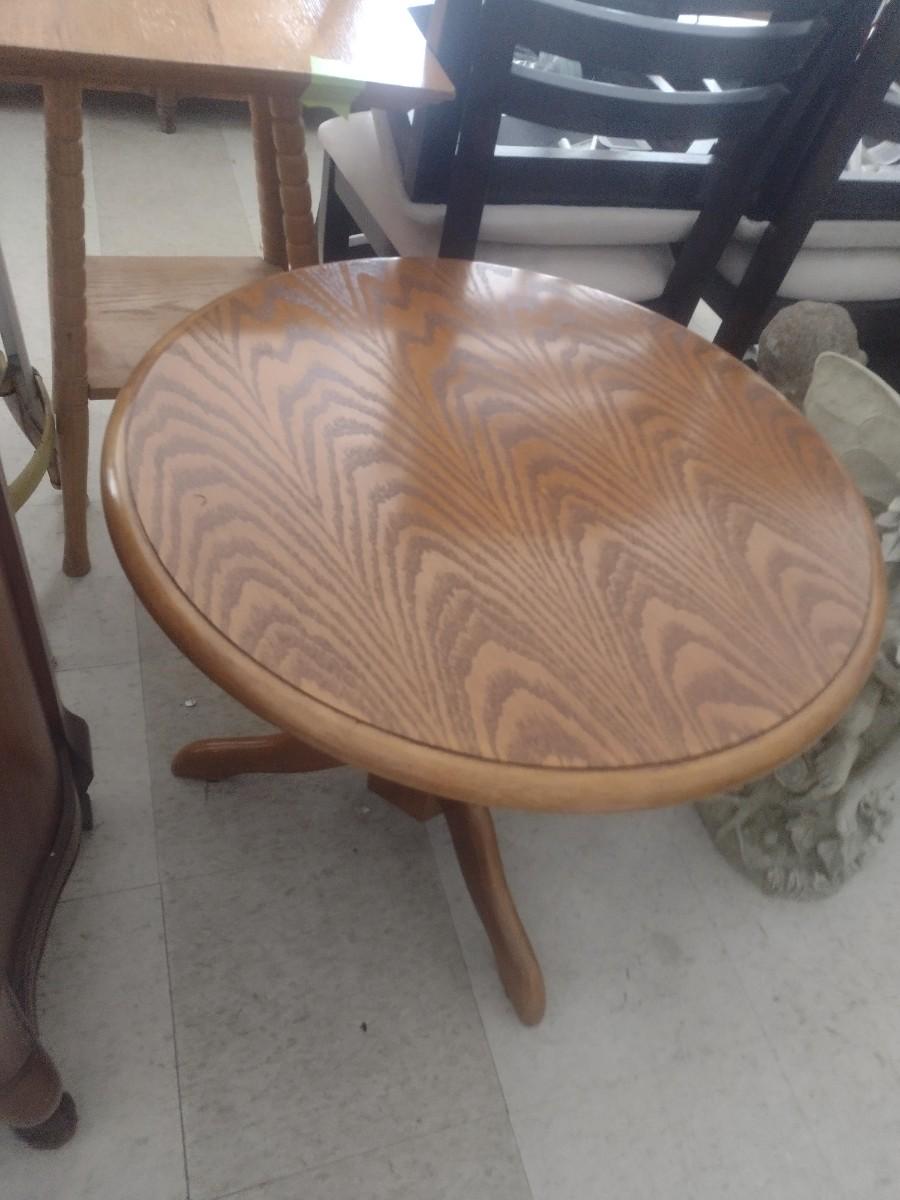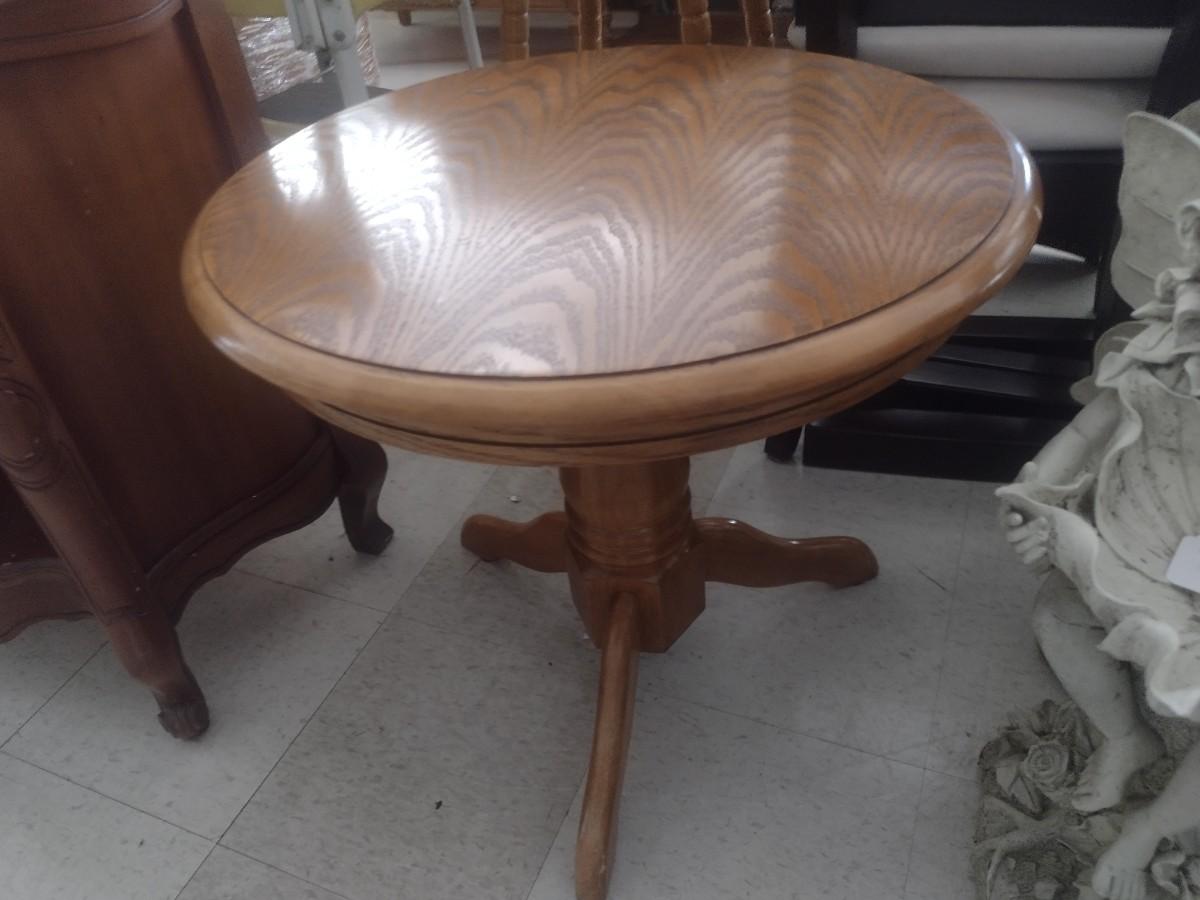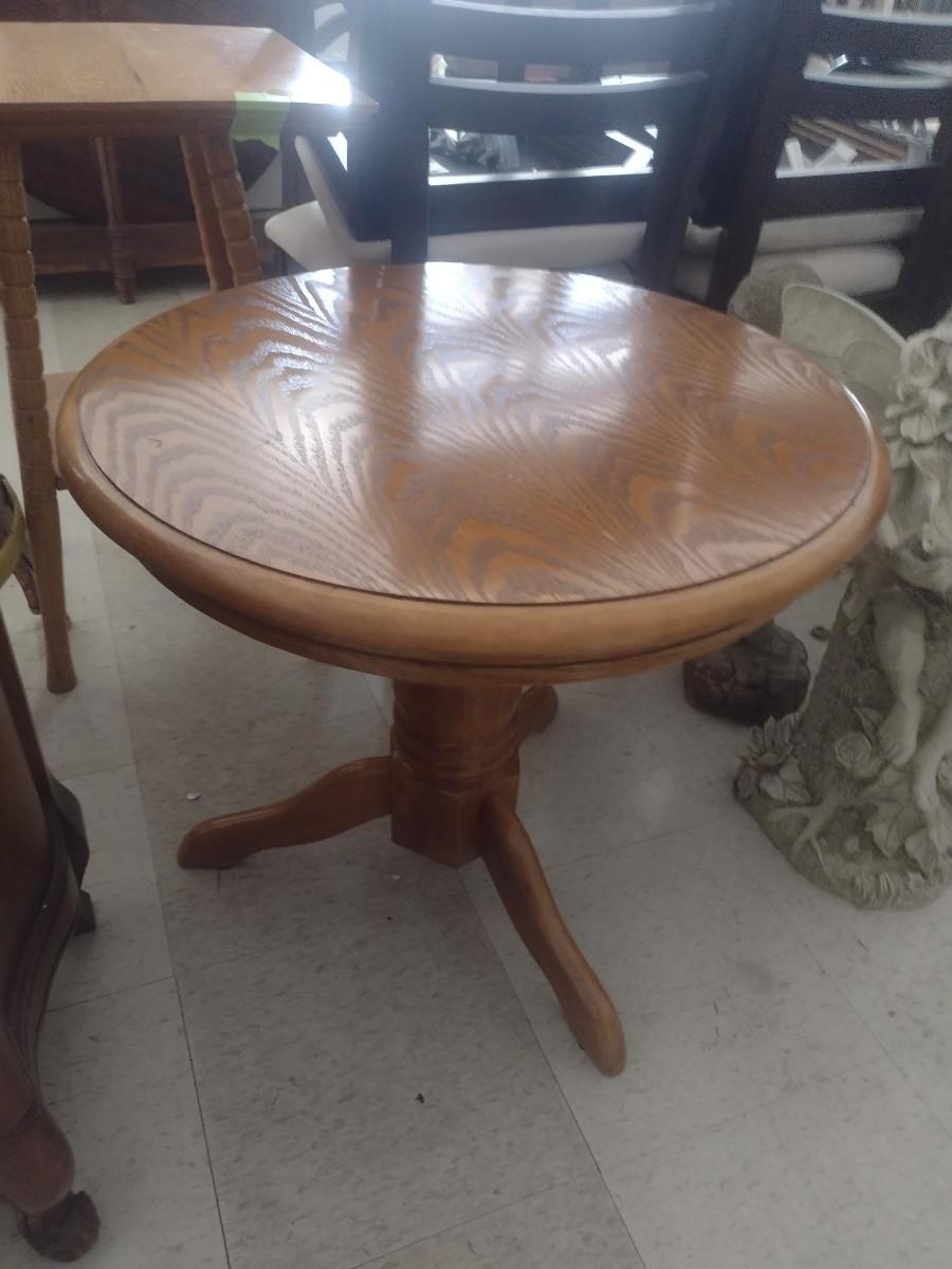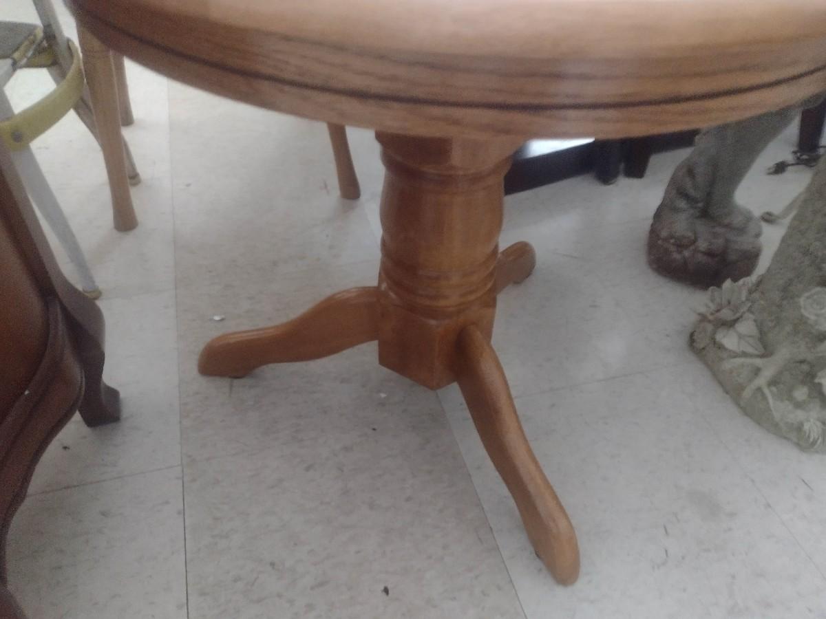Oak Round Pedestal Lamp Table