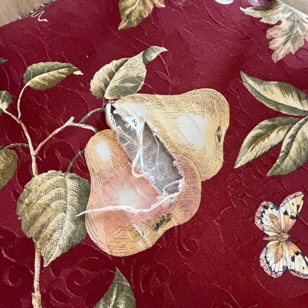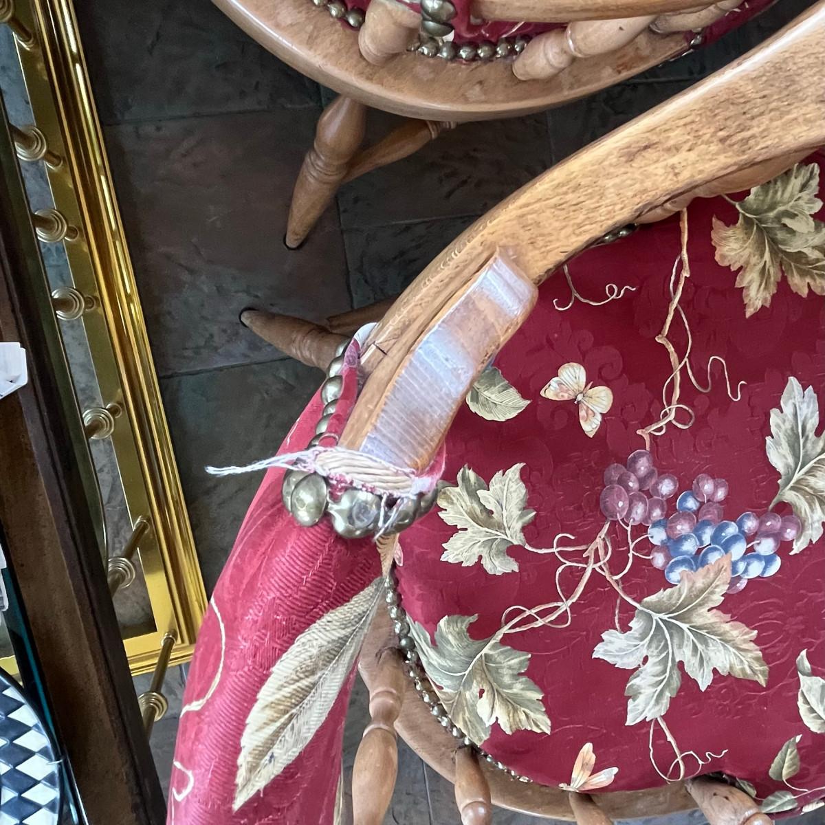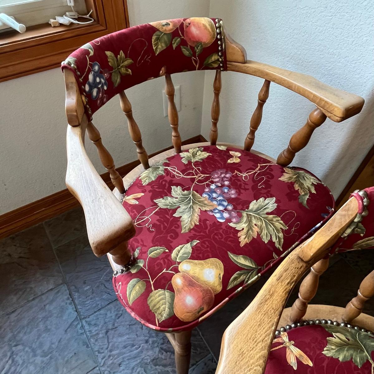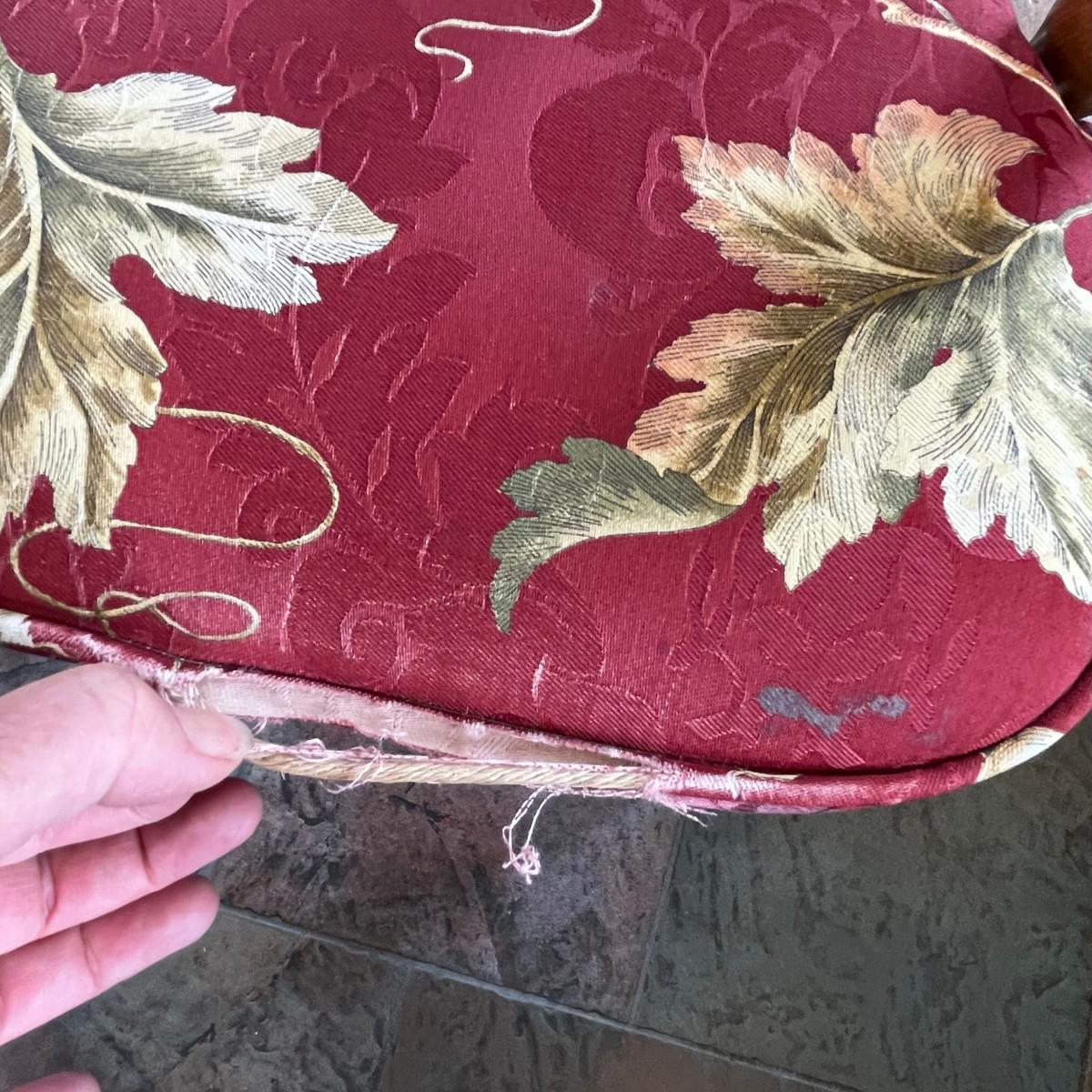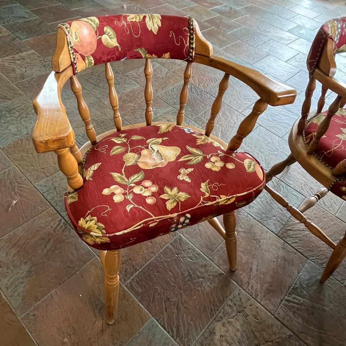 There is some wear to the finish on the table top. Plus the chairs all have upholstery issues. Still a nice set to use as a daily use or beginning set.