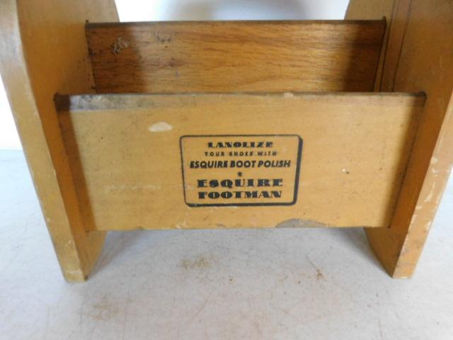Oak Shoe Shine Box Esquire Polish Stamp 10"x11"