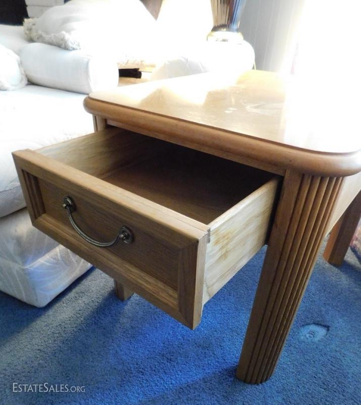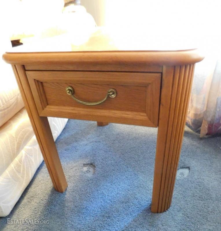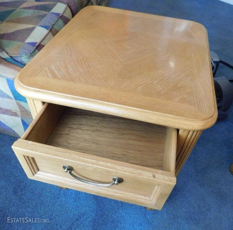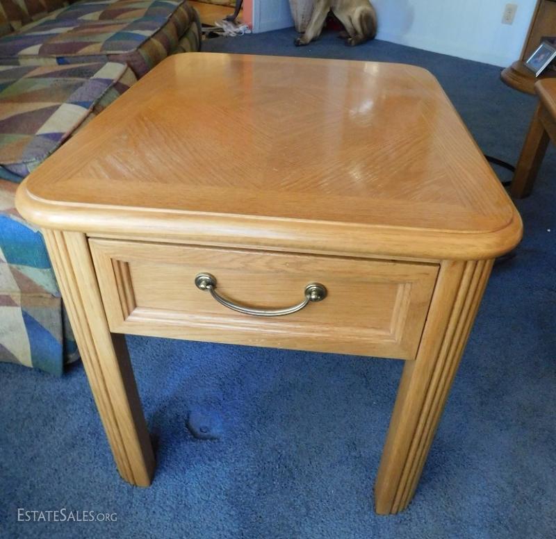 Oak side table 2 of 2 of equal size and condition. Some visible wear on top.