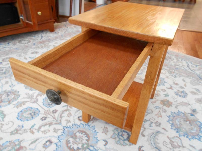 Oak Side Table with Drawer and Shelf