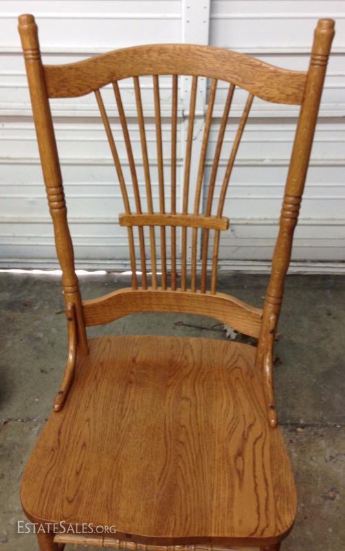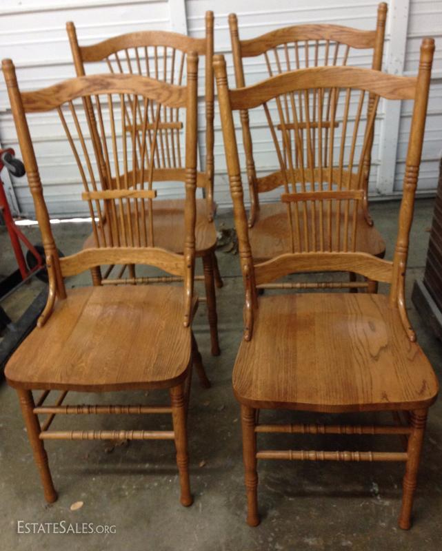 Set of 4 Oak Spindle Back Chairs. Please view photos at full screen size for best detail.