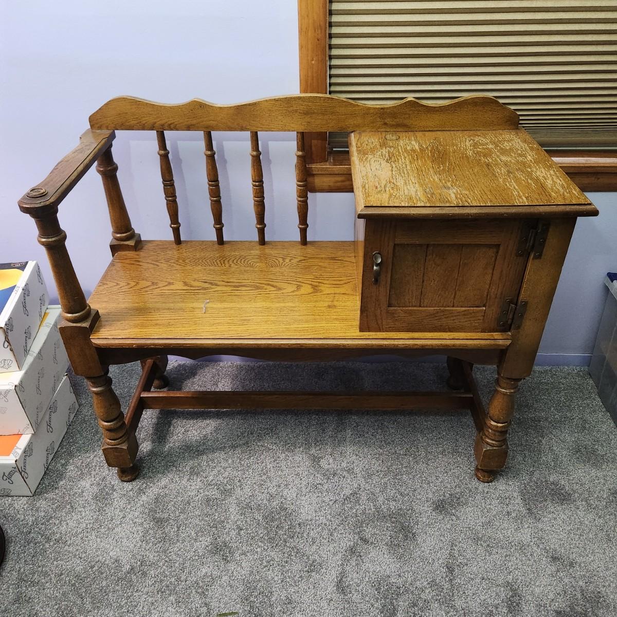 Oak Telephone Entry Way Arm Chair Bench 36x15x31