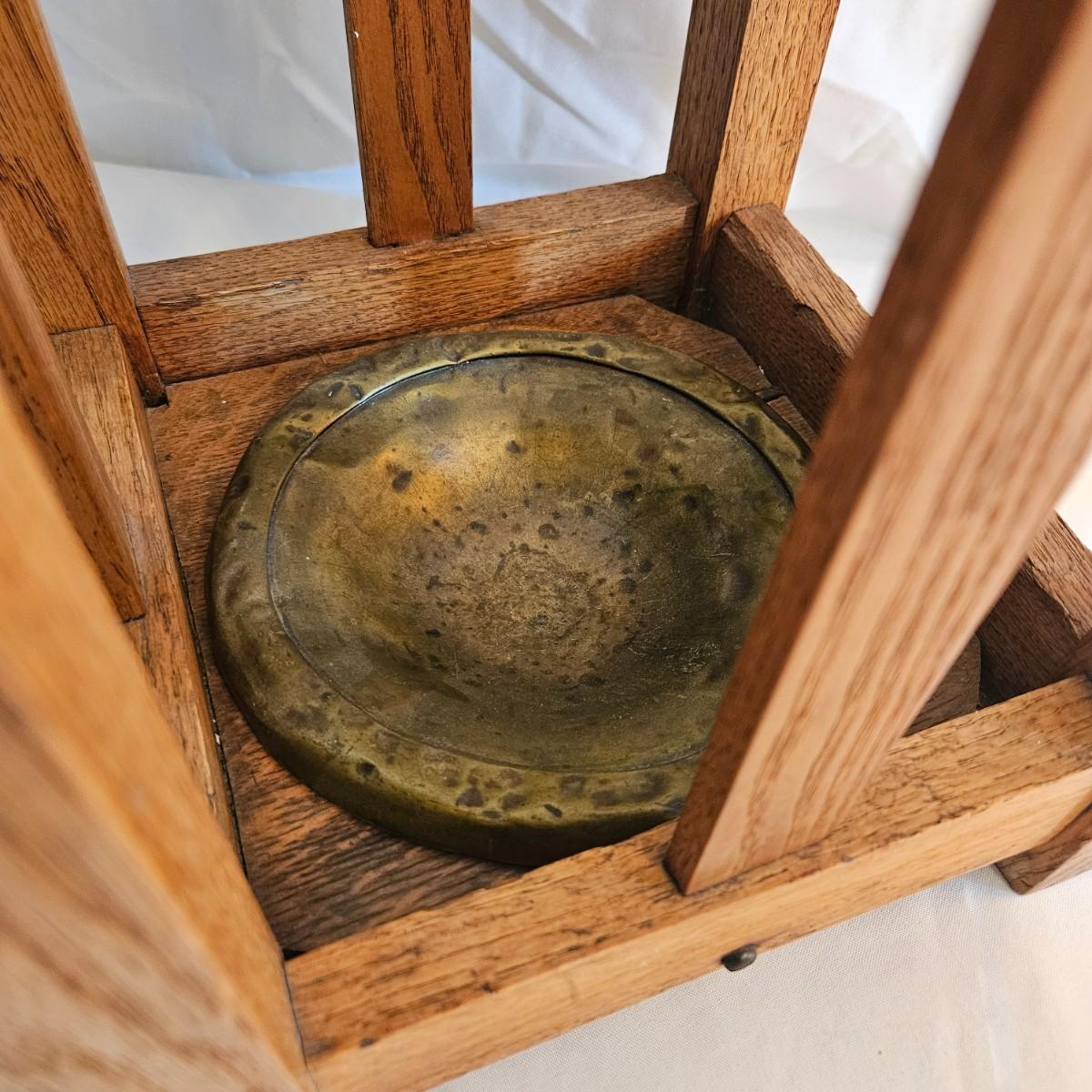 Oak Umbrella Stand and a Brass Lamp (LR-DW)