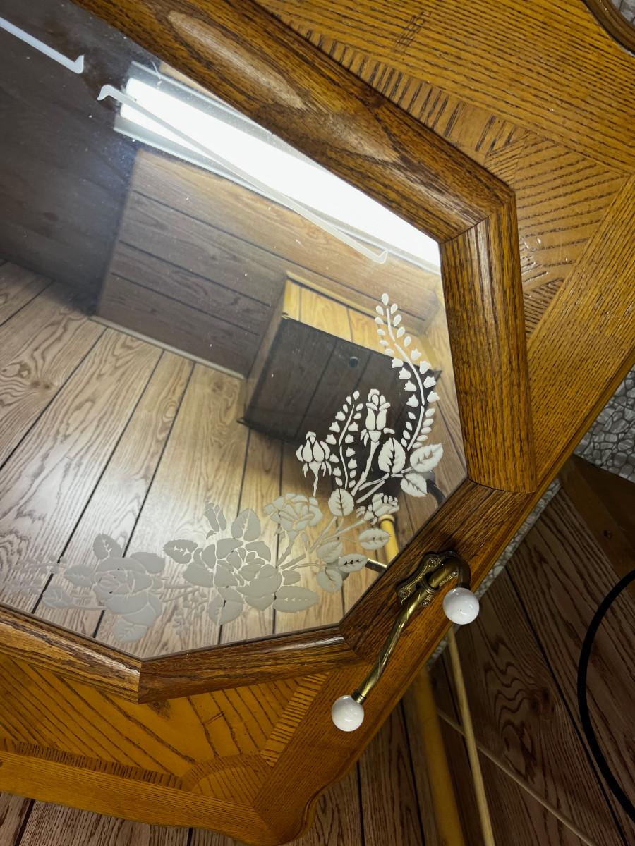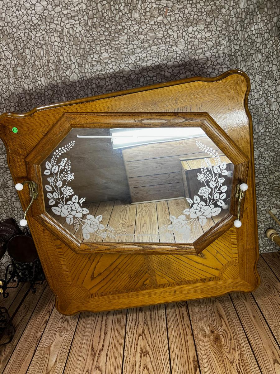 32" X 22" USED Good Condition! Oak and Floral on Mirror. NO SHIPPING TO Big.