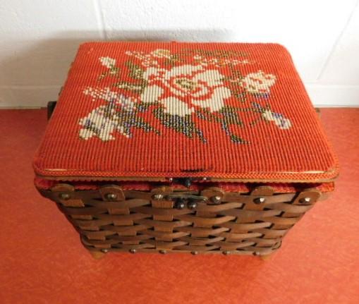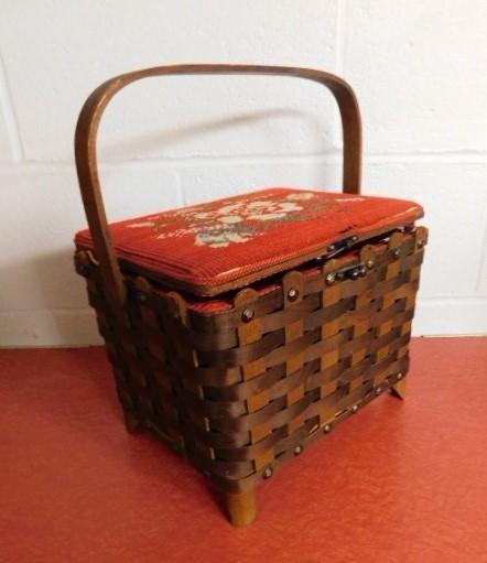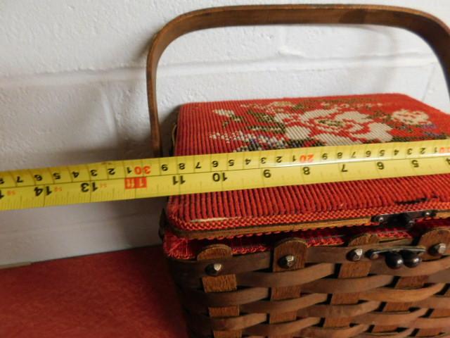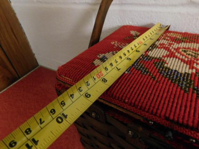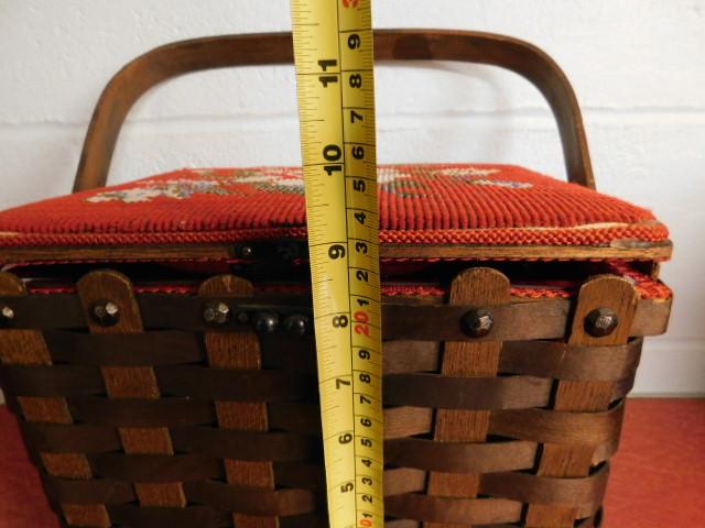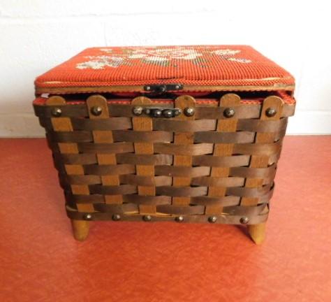 Oak Weave Decorative Sewing Basket with Needle Point Cushion Top 11"x9" very nice piece