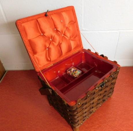 Oak Weave Decorative Sewing Basket with Needle Point Cushion Top 11"x9"