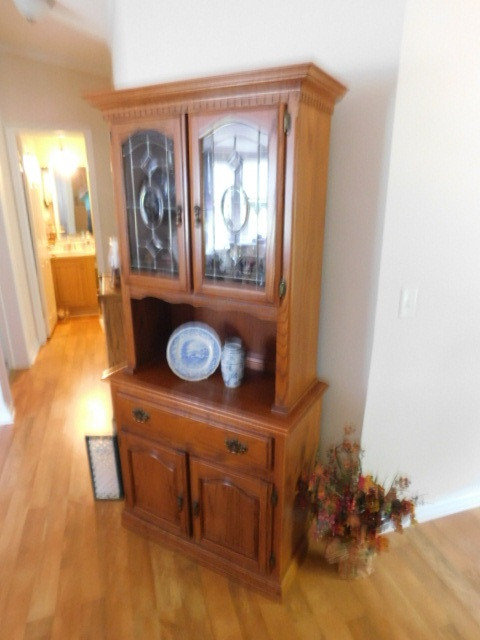 Oak Wood Cabinet and Hutch (No Contents)