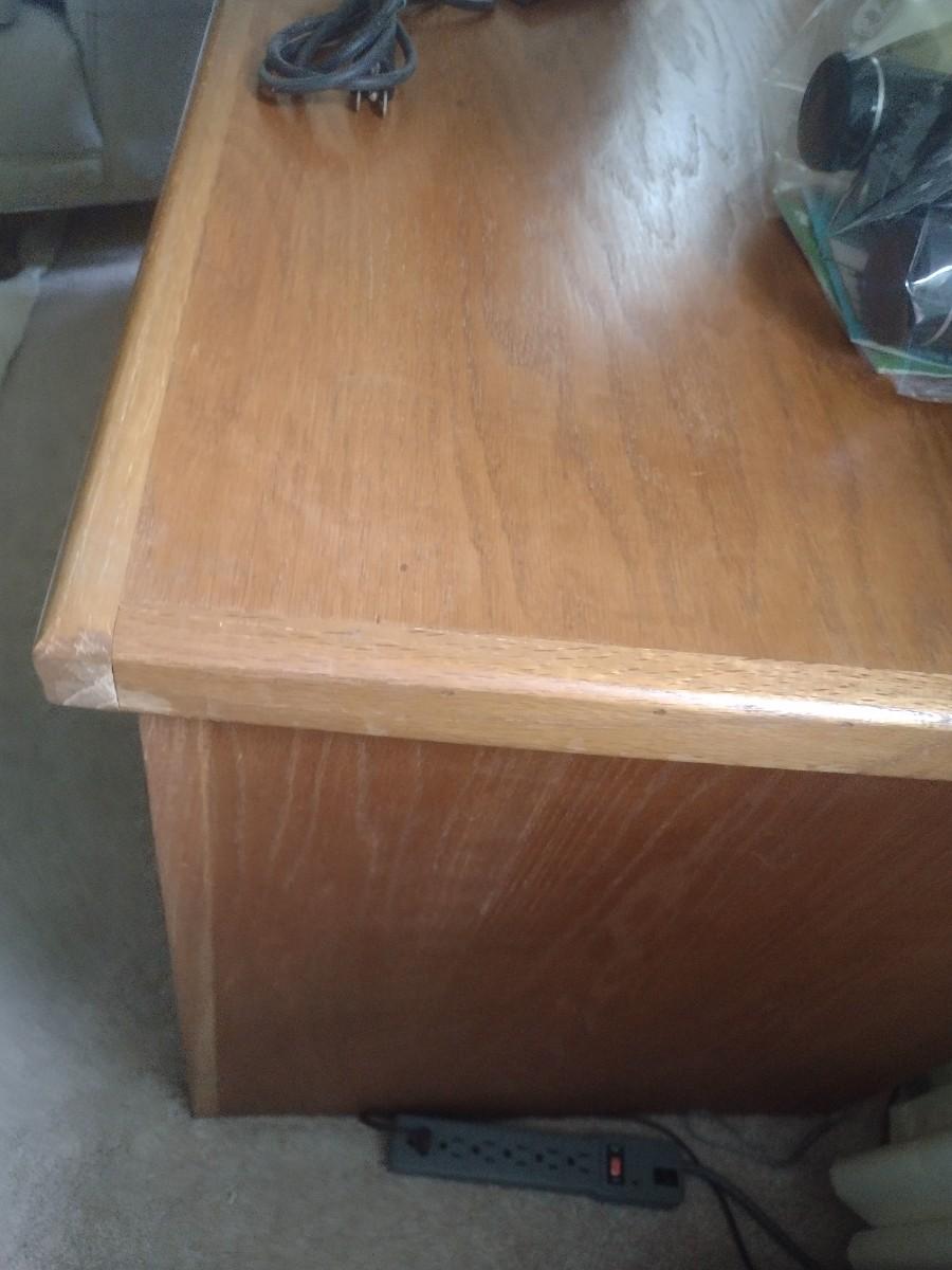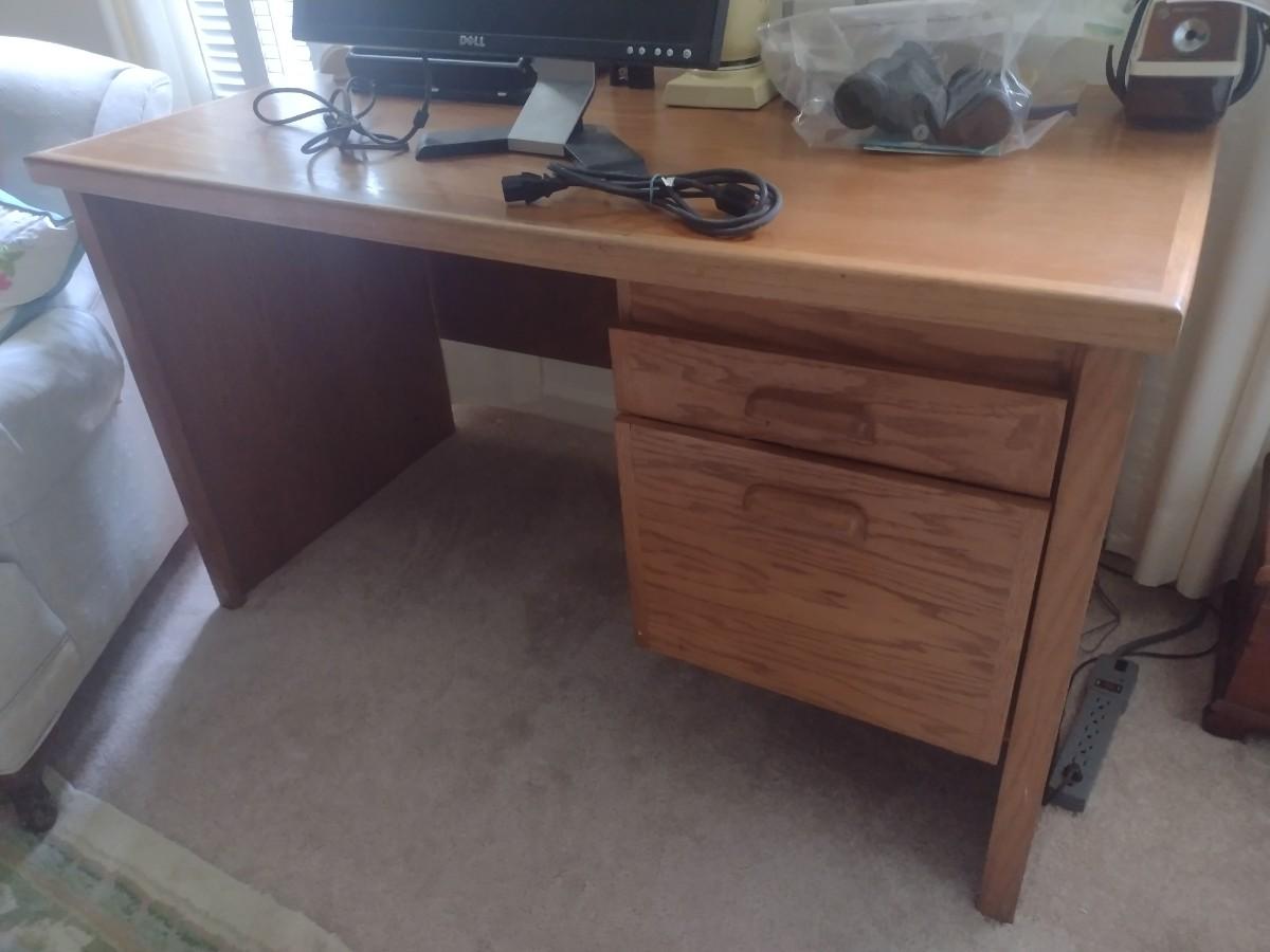 Oak Wood Finish kneehole Office Desk (No Contents) upstairs item