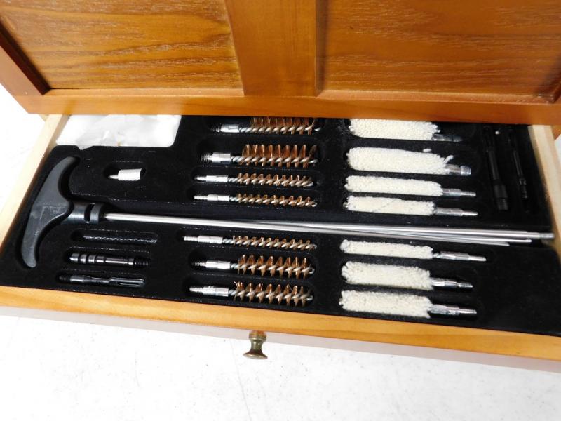 Oak Wood Gun Cleaning and Repair Kit seems to be intact and complete.