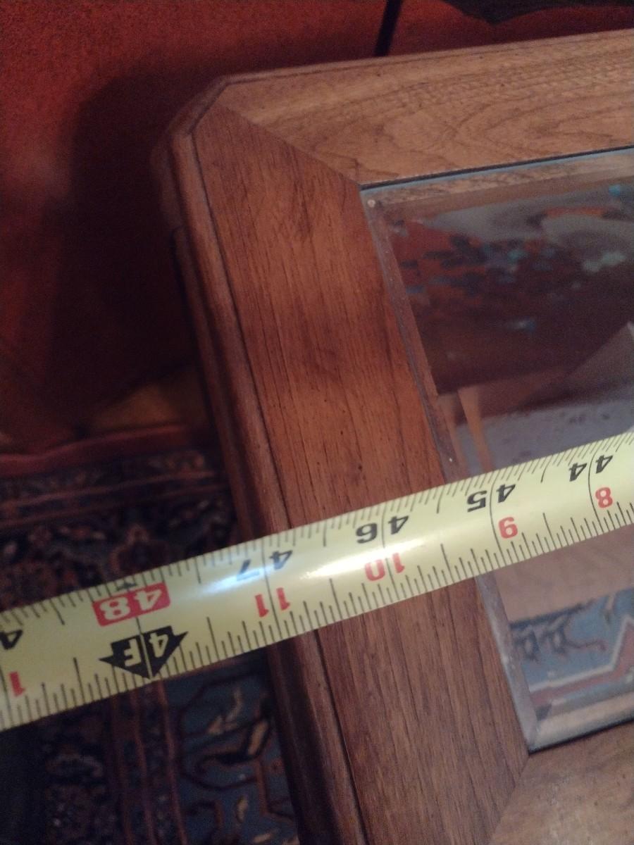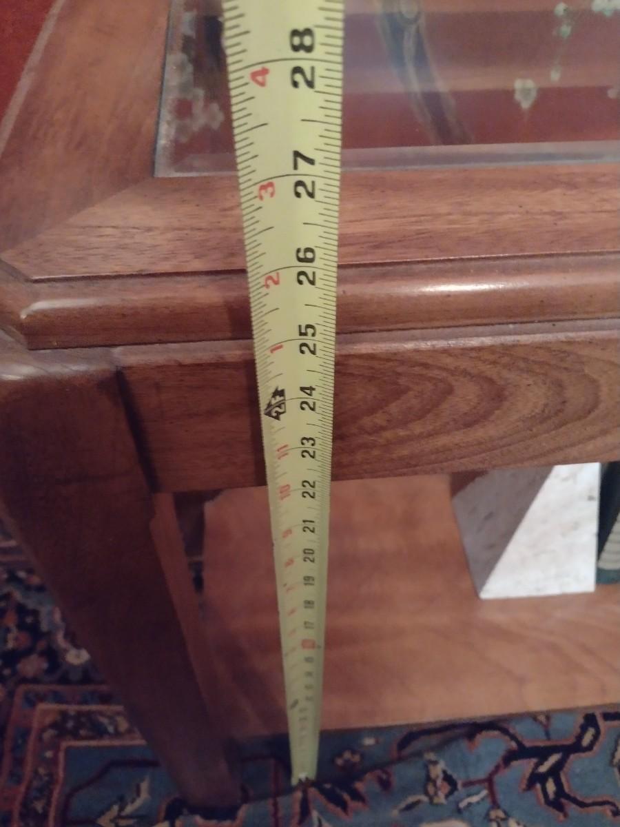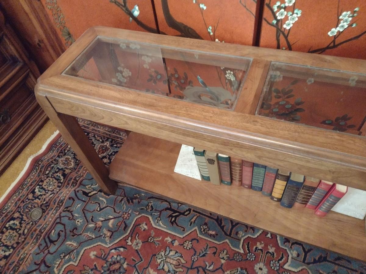 Oak Wood Sofa Table with Glass Insert Top (No Contents)