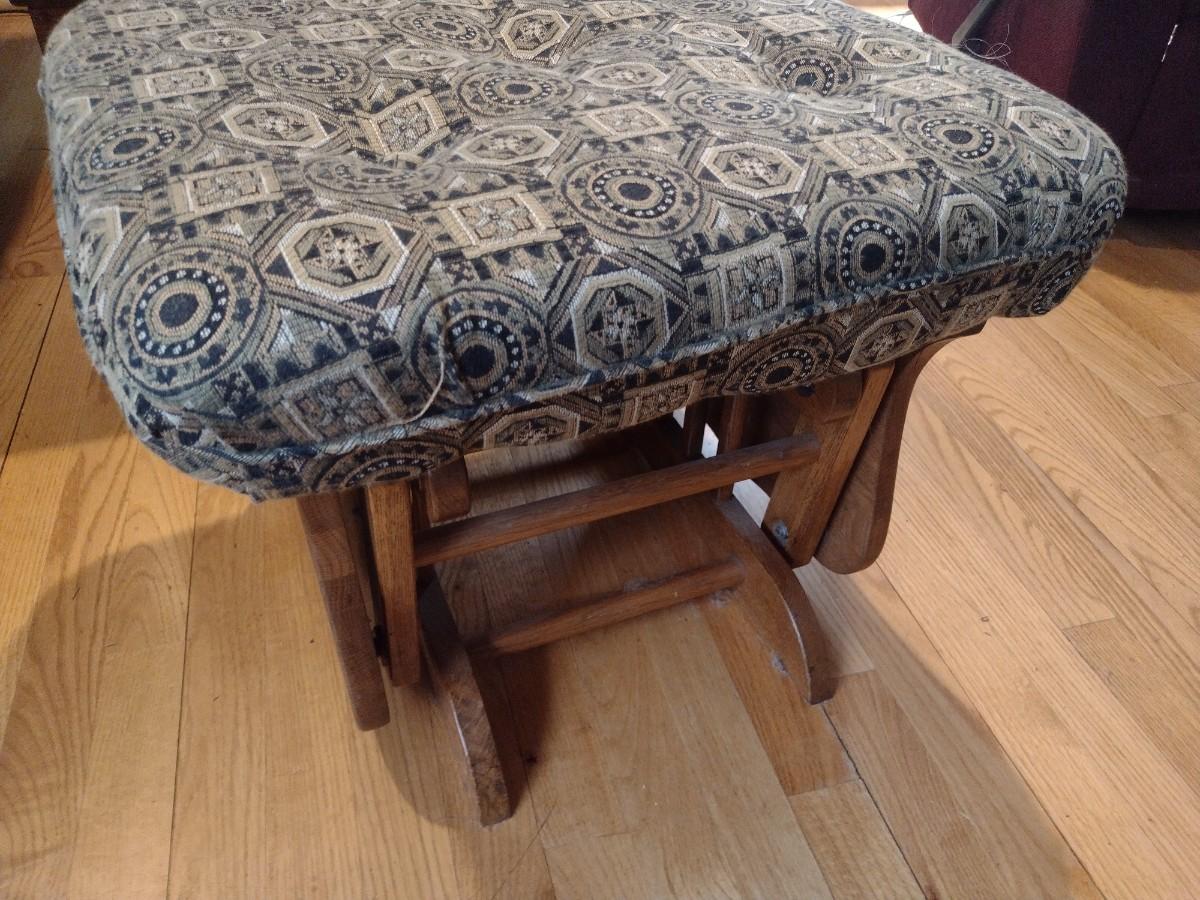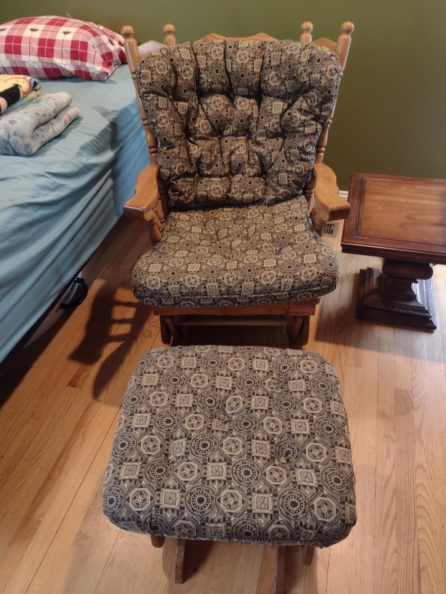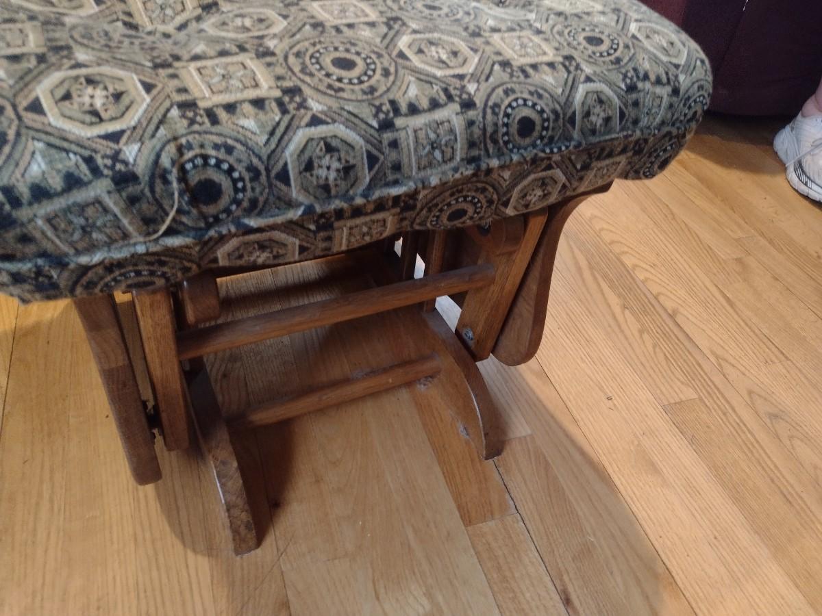 Oak Wood Upholstered Glider Sitting Chair with Gliding Ottoman