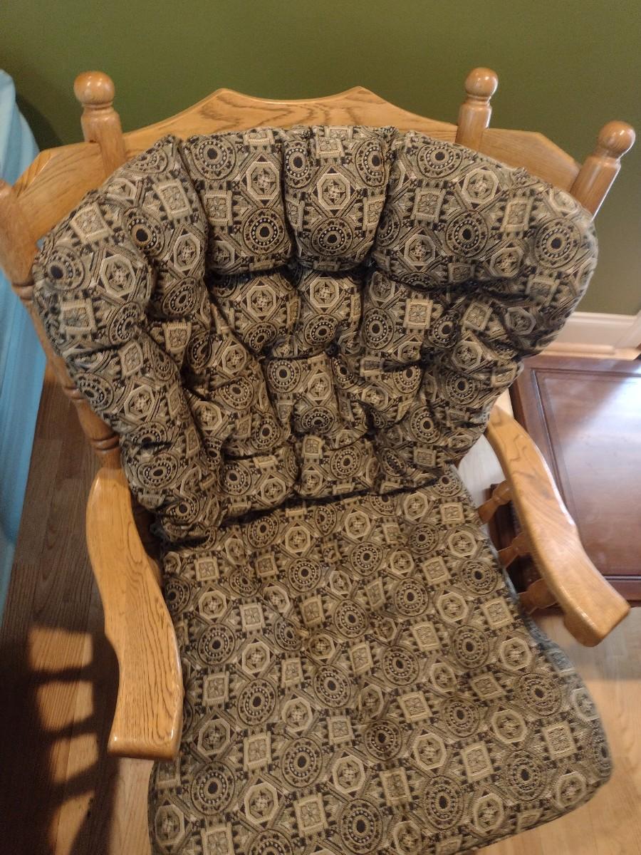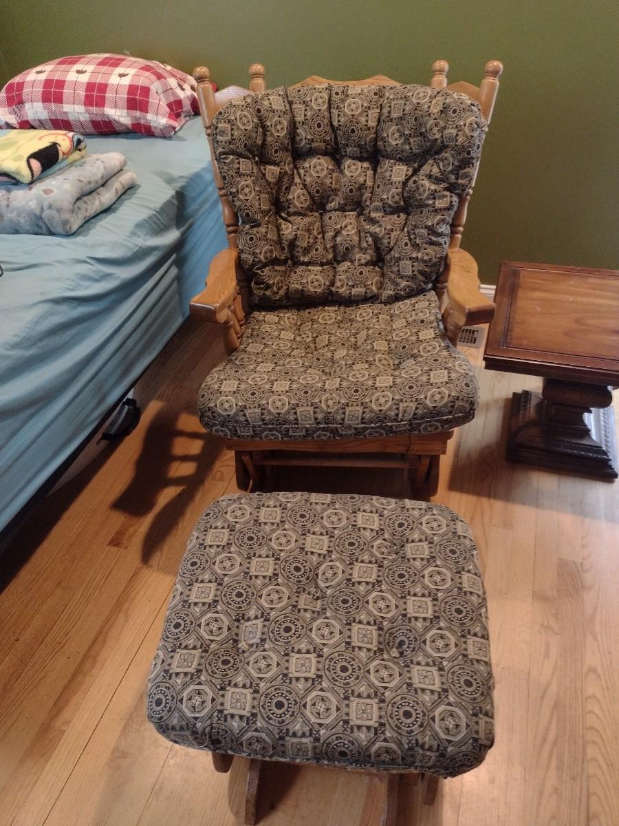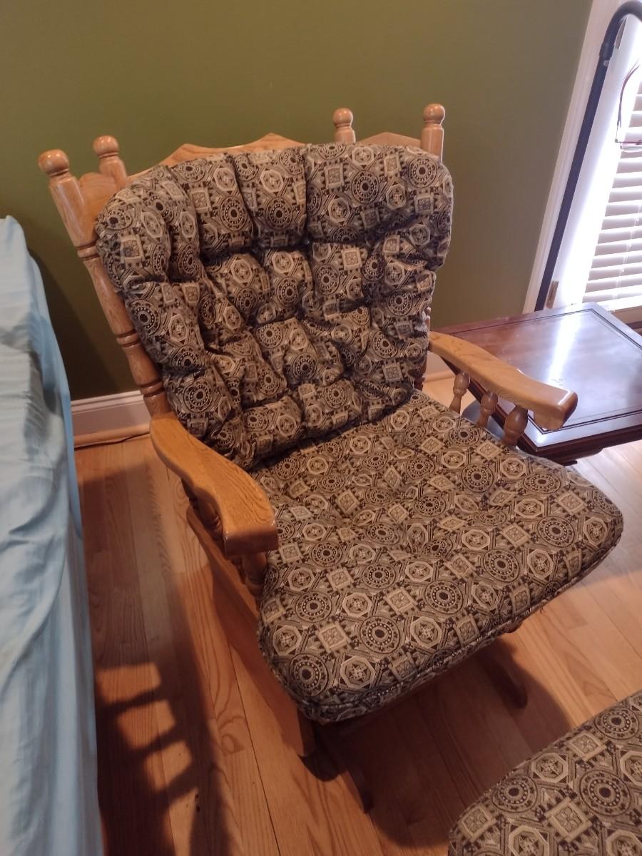 Oak Wood Upholstered Glider Sitting Chair with Gliding Ottoman