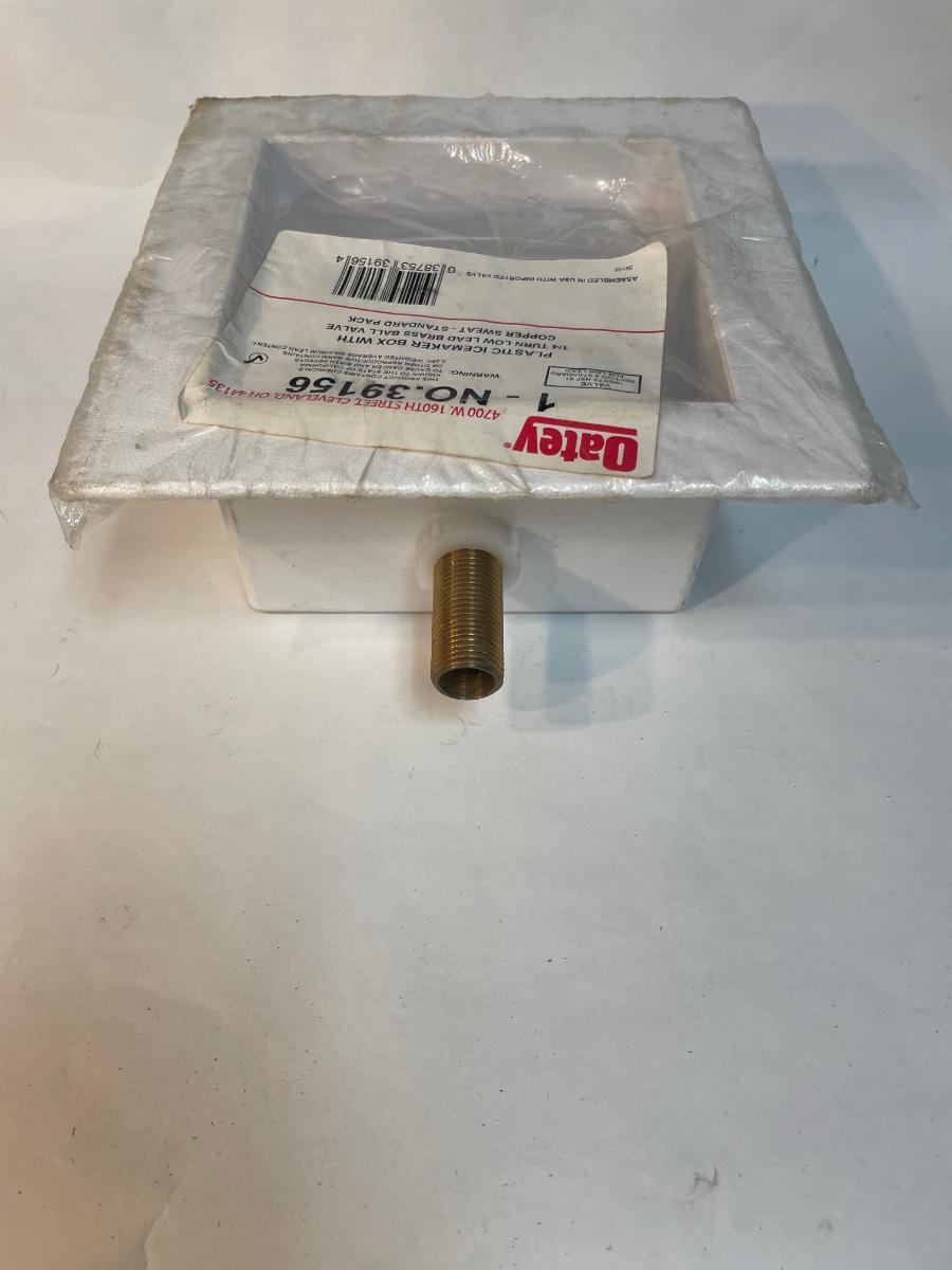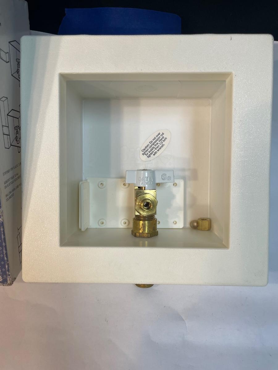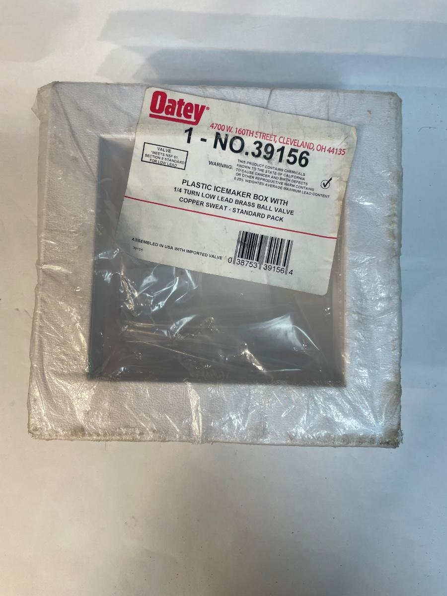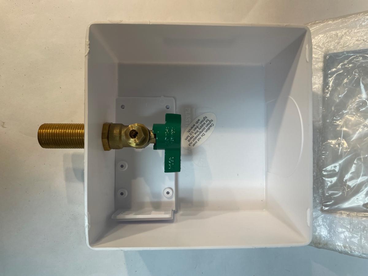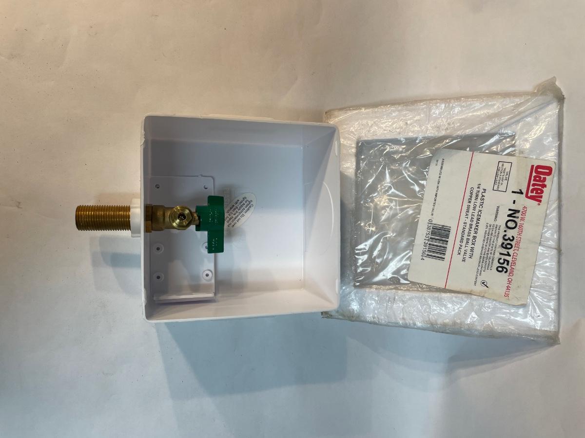 Oatey Icemaker Box Kit, Model 39156. New in package, for connecting water line to refrigerator for ice maker and/or water dispenser. Made from white plastic, can be painted to match interior color.